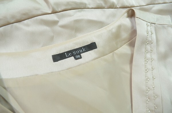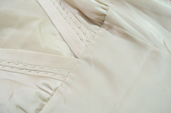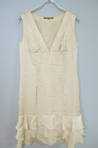 A2676/春夏 薄手 Le souk ルスーク トリアセテート 無地 光沢 デザイン フリル ロング 膝丈 ワンピース 38 茶 ベージュ/日本製 レディース