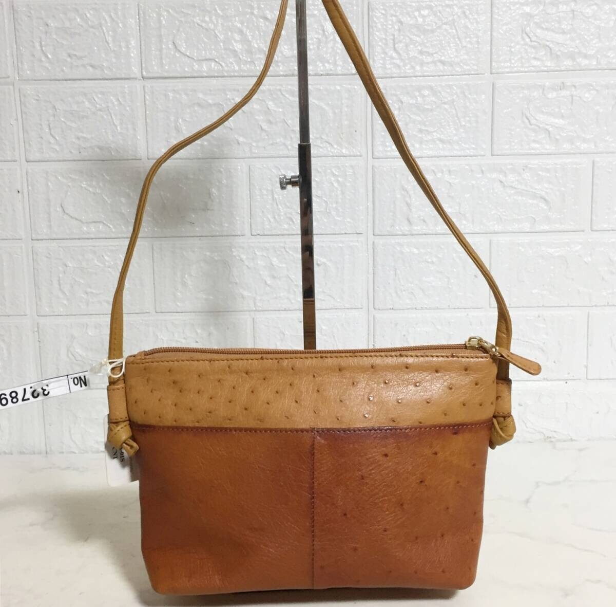no32789 高級 NB 本革 レザー エキゾチック オーストリッチ ダチョウ 斜め掛けショルダー バッグ ポシェット