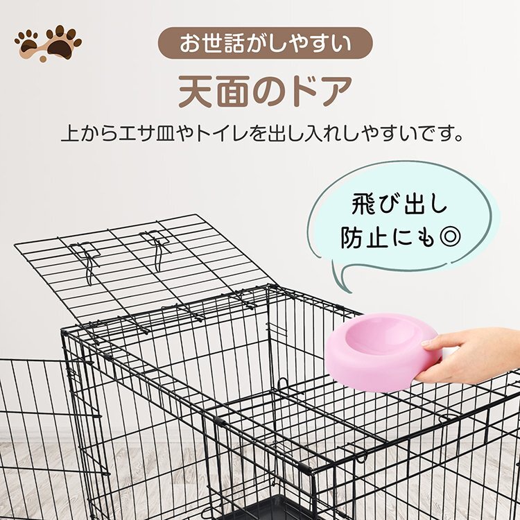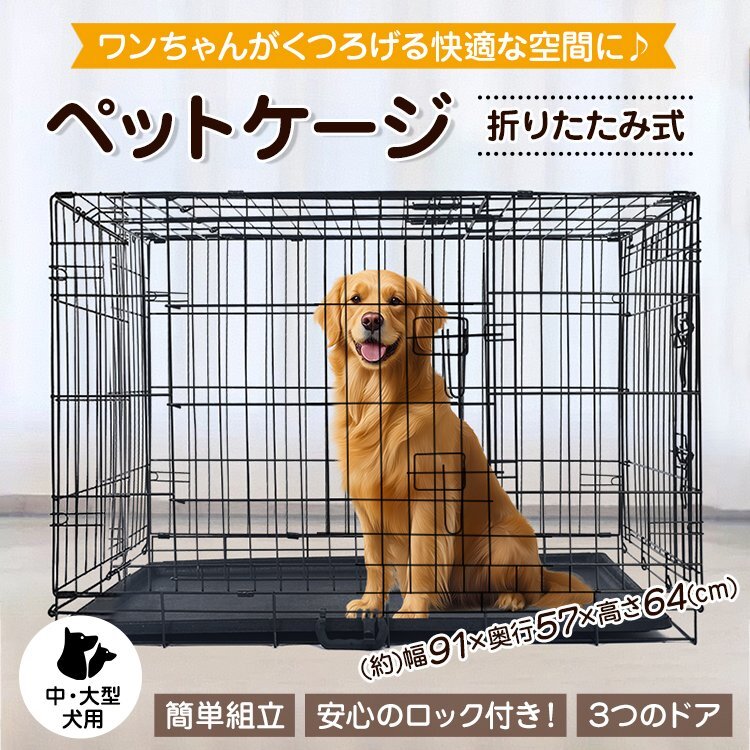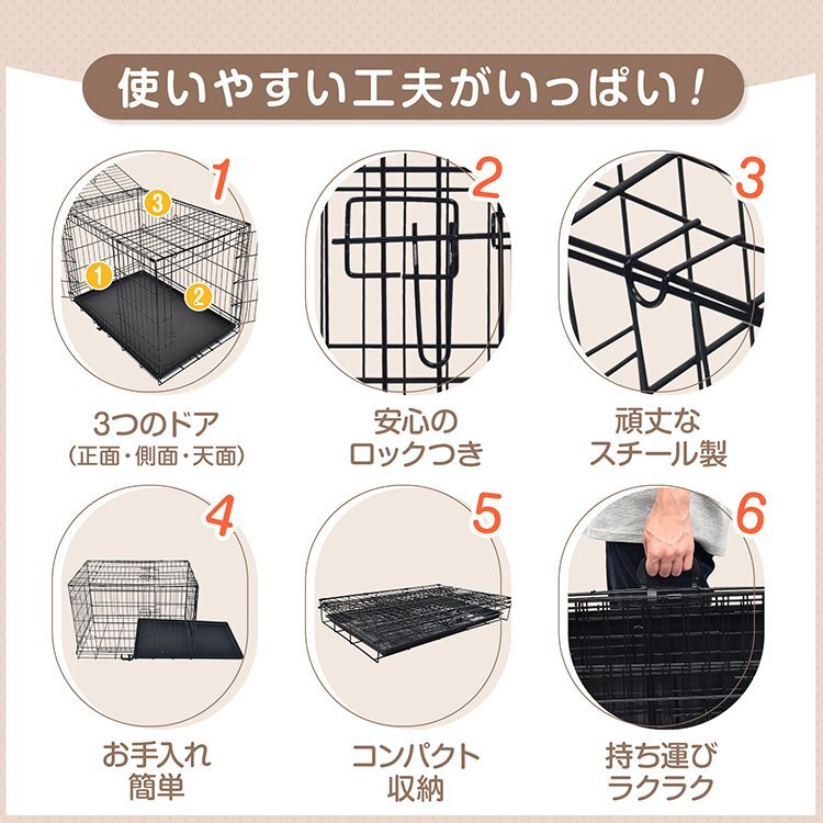 送料無料 ペットケージ 犬ゲージ 折りたたみ ペットサークル 中型 引き出しトレー ダブルドア 柵 室内 取っ手付き 小屋 工具不要 猫 pt066