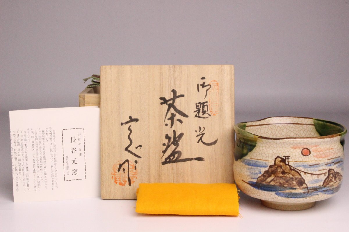 加藤六兵衛 (景陶) 作 瀬戸赤津 長谷元窯 御題 光 茶碗「共箱」