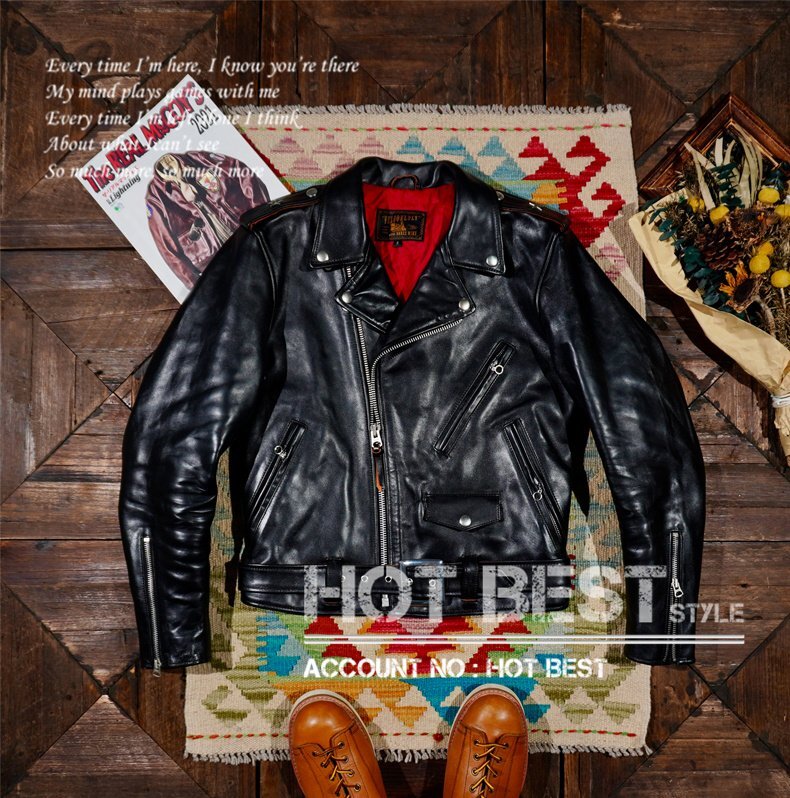 1.3mm 茶芯ホースハイド 50'スタイル メンズ 革ジャン ダブルライダース レザージャケット 613 ワンスター オイルレザー 馬革 Y1297/S~4XLサイズ指定可