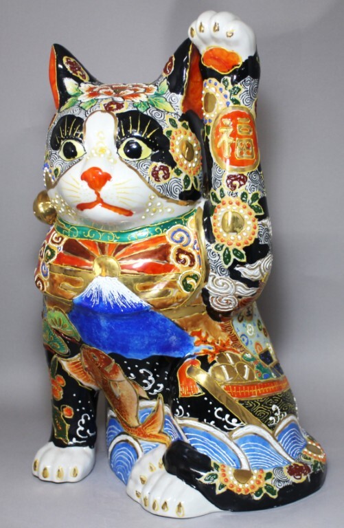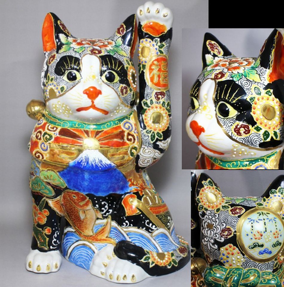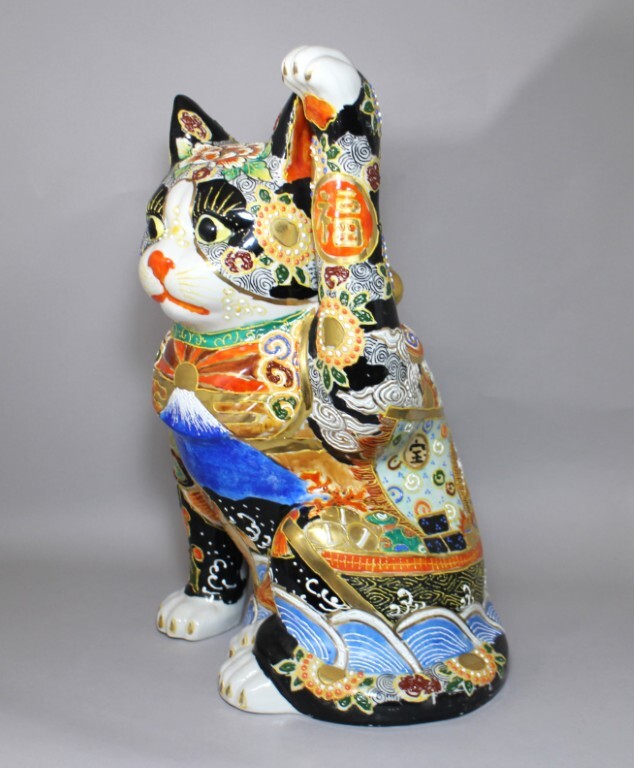 | 吉祥盛画 招き猫 高さ46cm 巨大猫九谷焼富士山 |