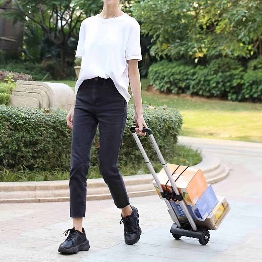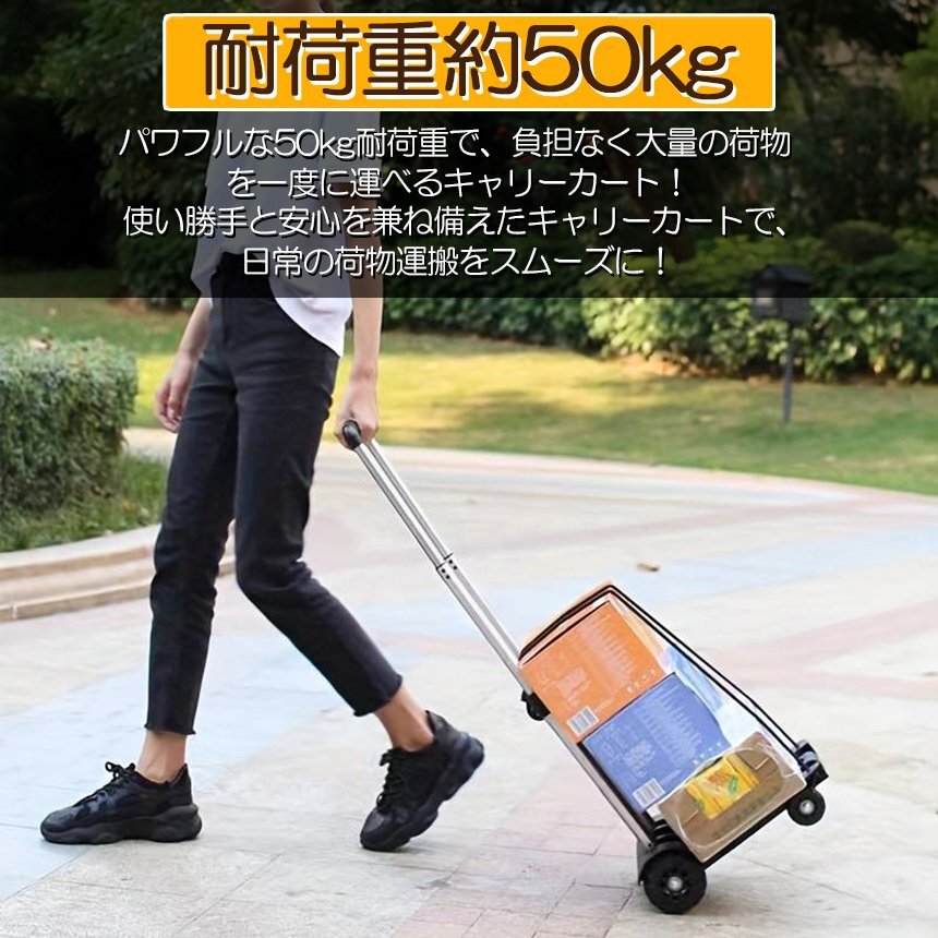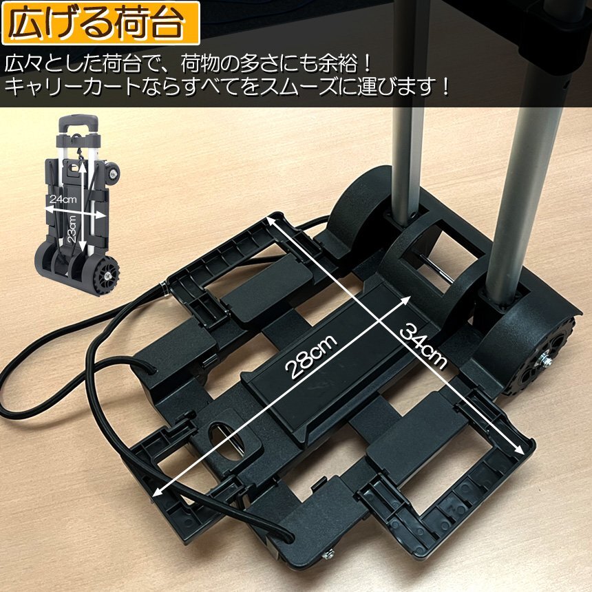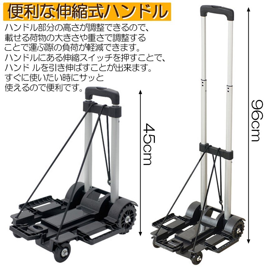 キャリーカート 4輪 折り畳み 台車 軽量 静音 ハンドキャリー 荷物運ぶカート 耐荷重50kg 固定ロープ付き 滑り止め 高さ調節 633