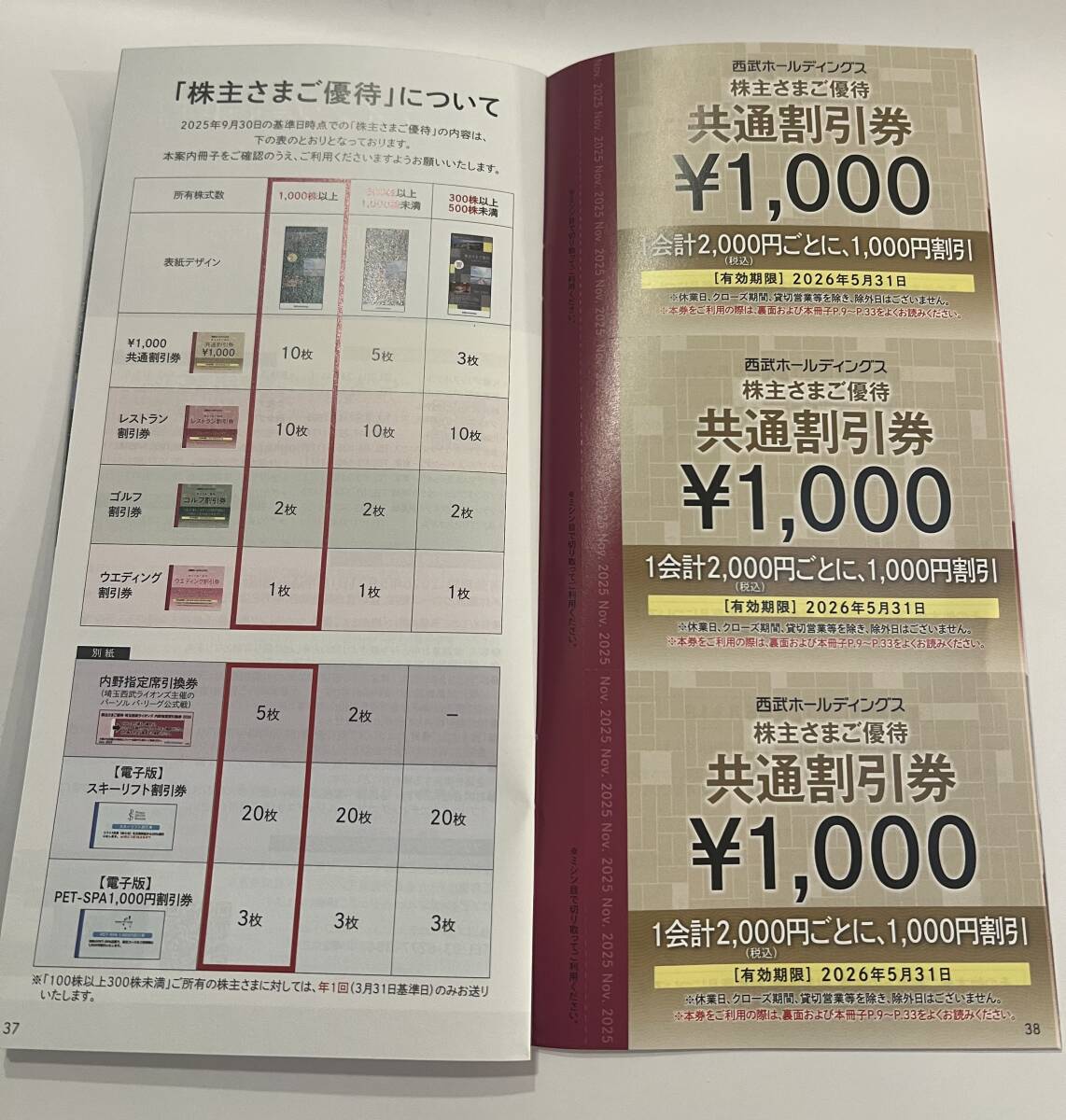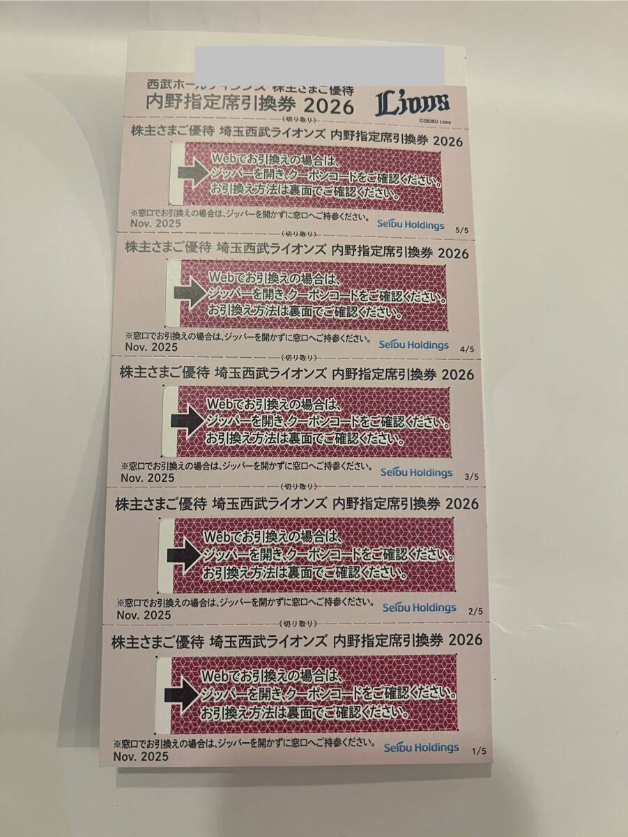 西武鉄道株主ご優待券冊子+内野指定引換券5枚セット