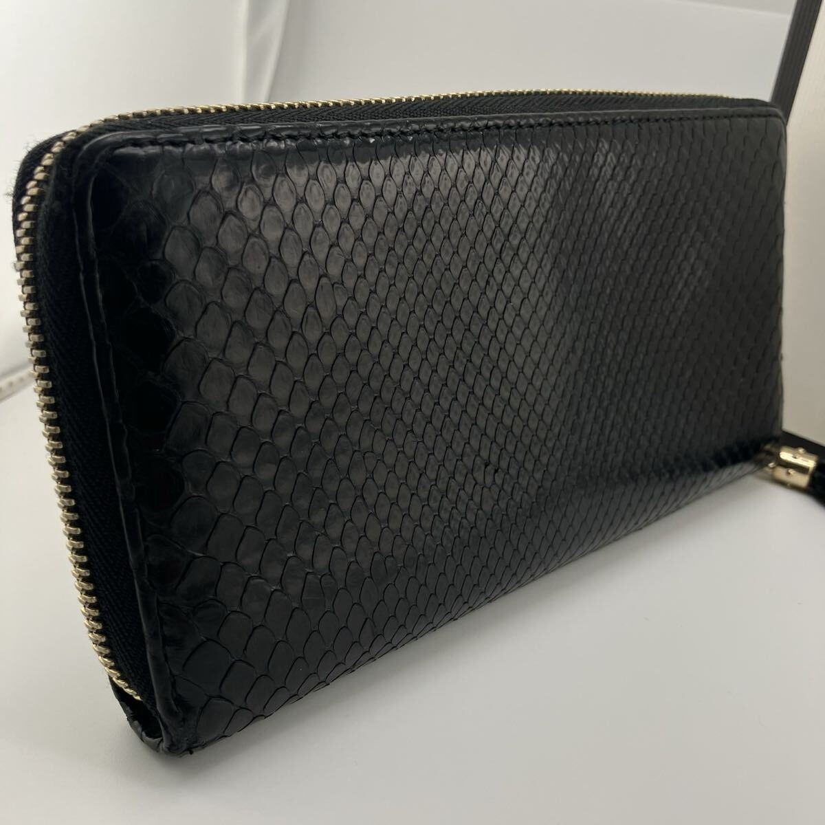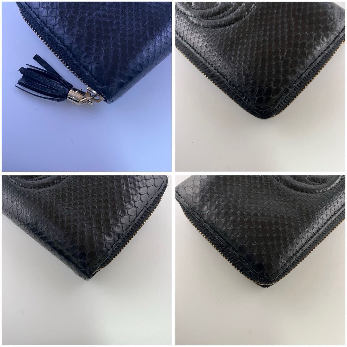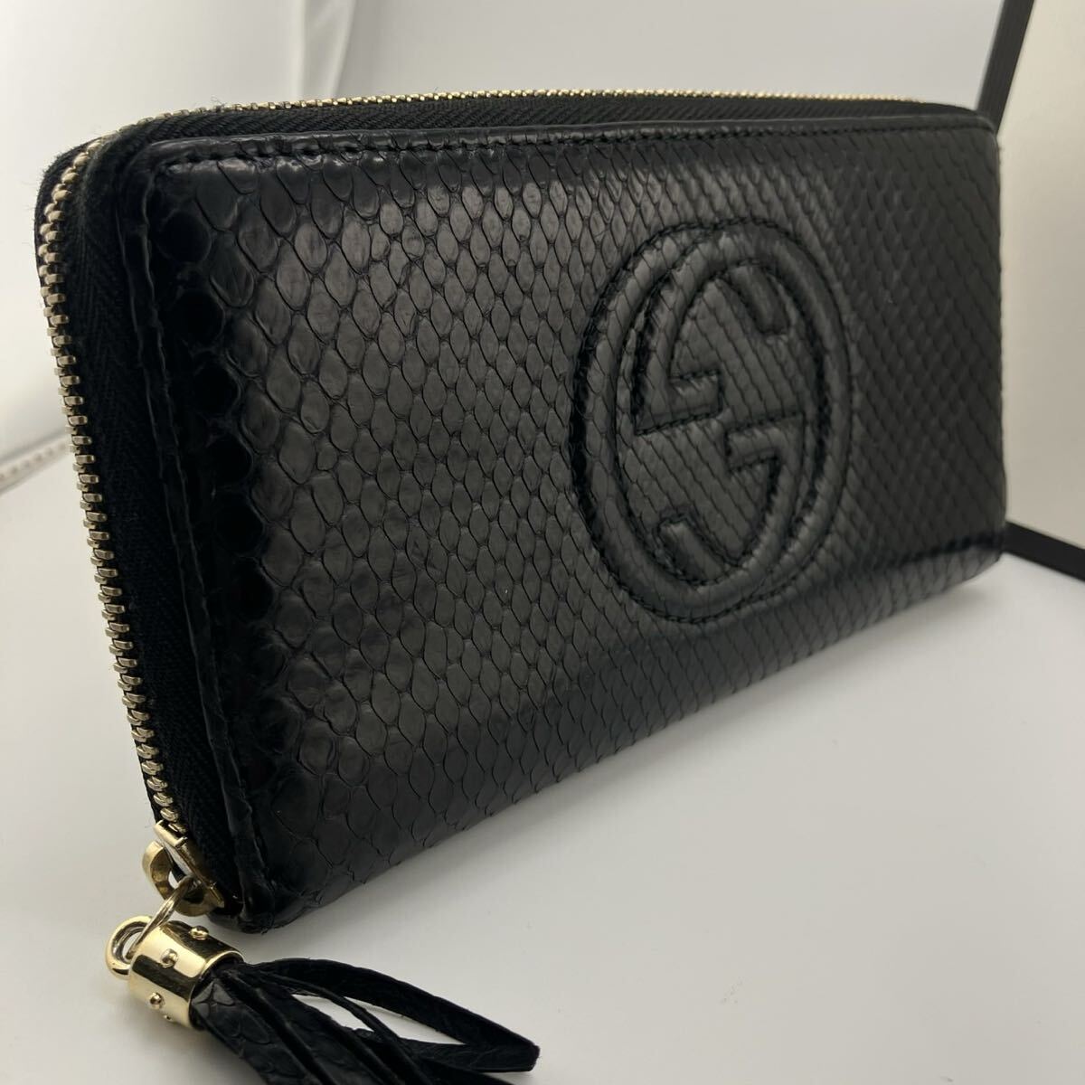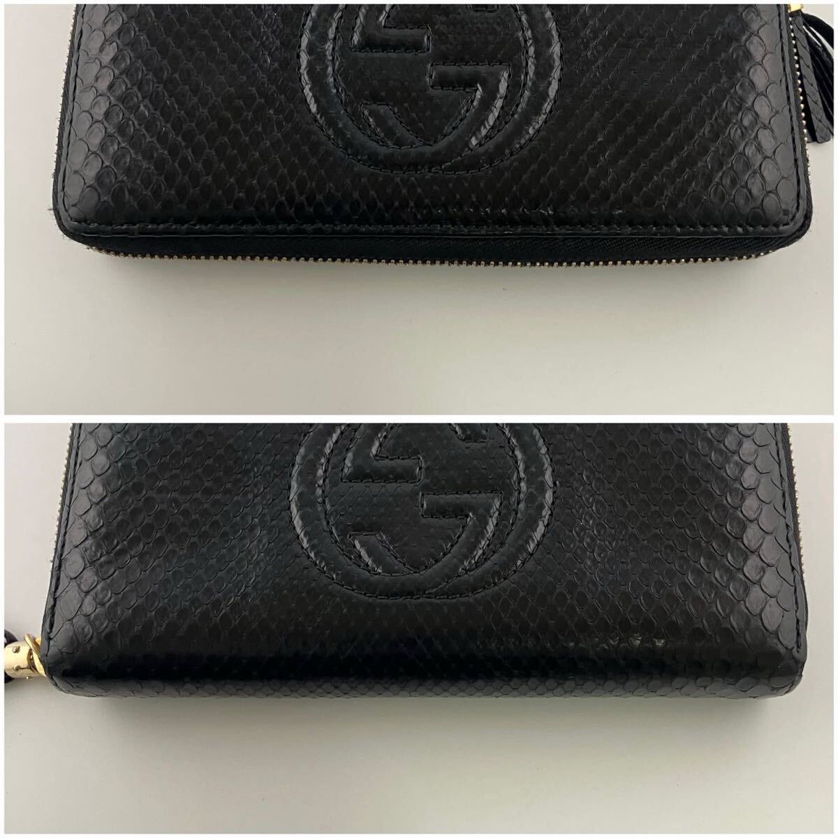 【商品】美品/付属品完備 gucci グッチ 長財布 ラウンドファスナー パイソン 蛇革 ソーホー 黒 レザー メンズ ビジネス