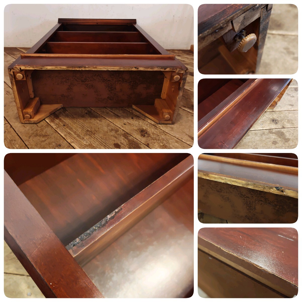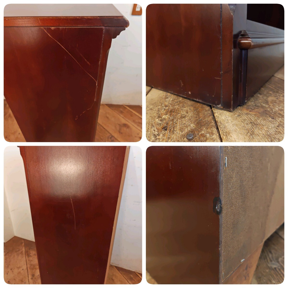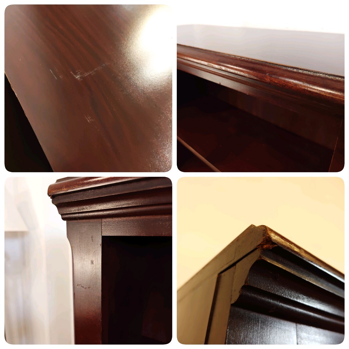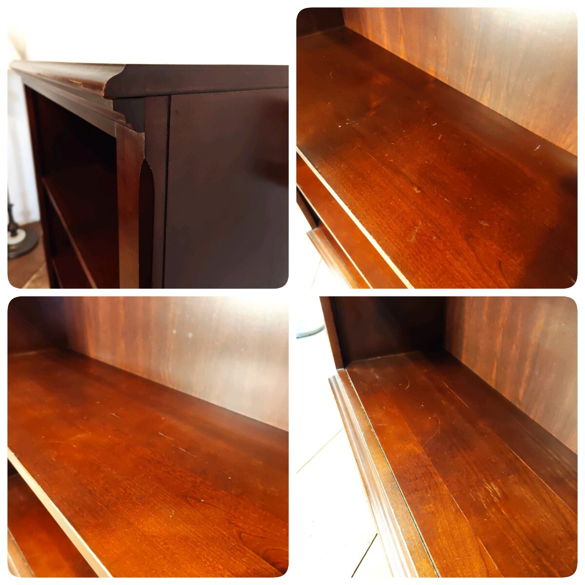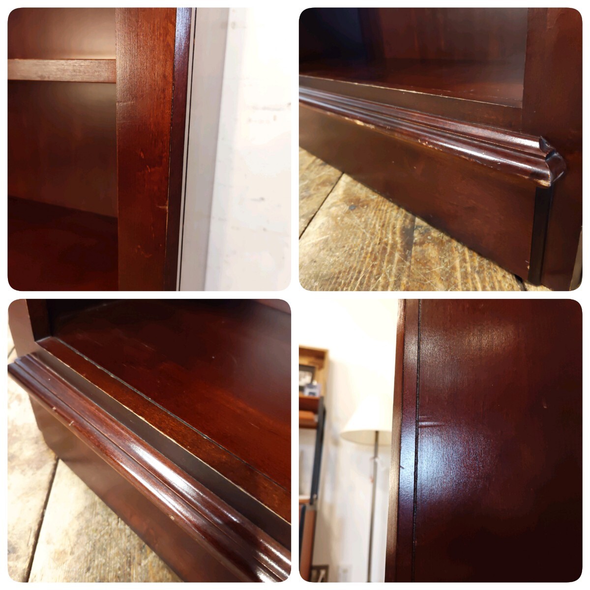 フレームや棚板全体的に傷や擦れ、くすみ、汚れ、塗料や木部の剥がれ、削れ、へこみ等があり、棚板正面等に突板の剥がれがあります。