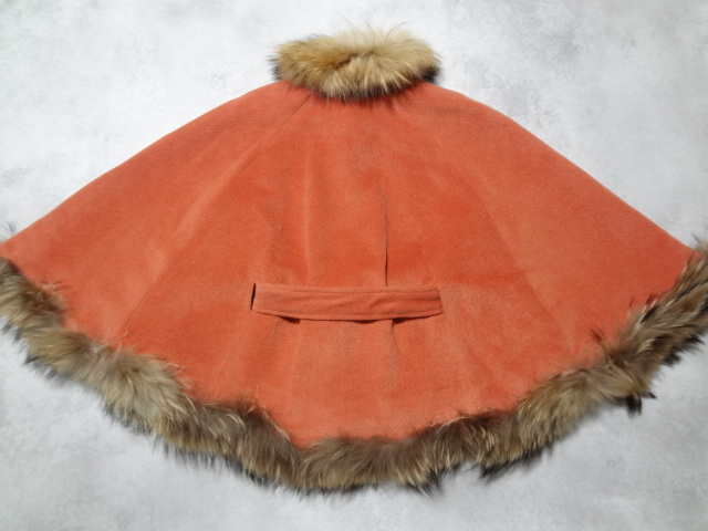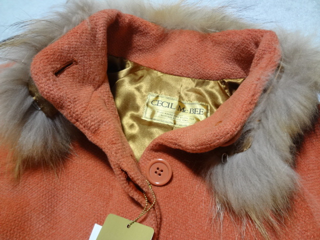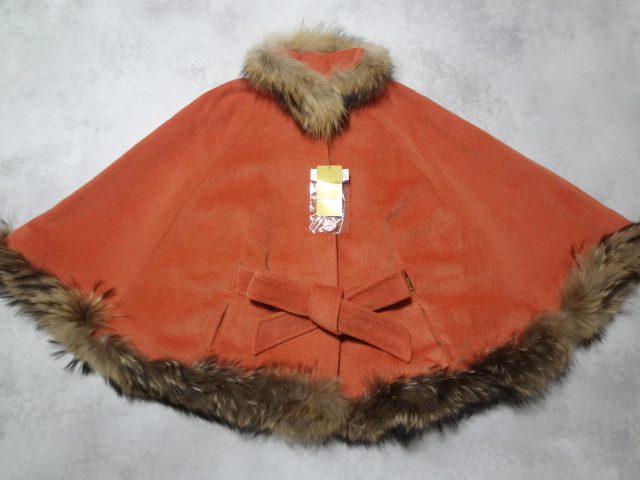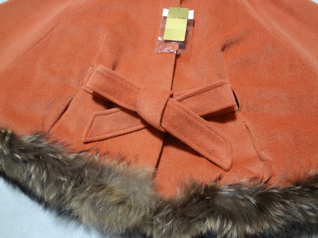 新品 定価29,400円 CECIL McBEEセシルマクビー ファー付きケープコート オレンジ Mサイズ タヌキ チャイニーズラクーン ポンチョ