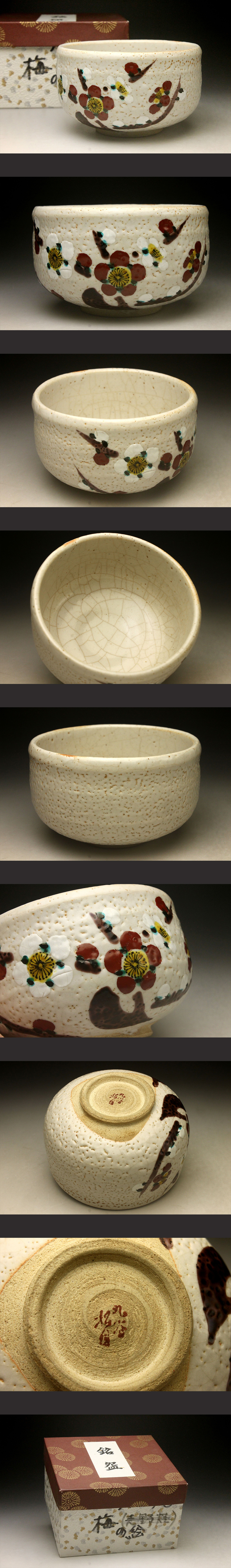 【余韻】 九谷焼 九谷松月 志野釉 色絵梅文 茶碗★化粧箱 茶道具<同梱可>