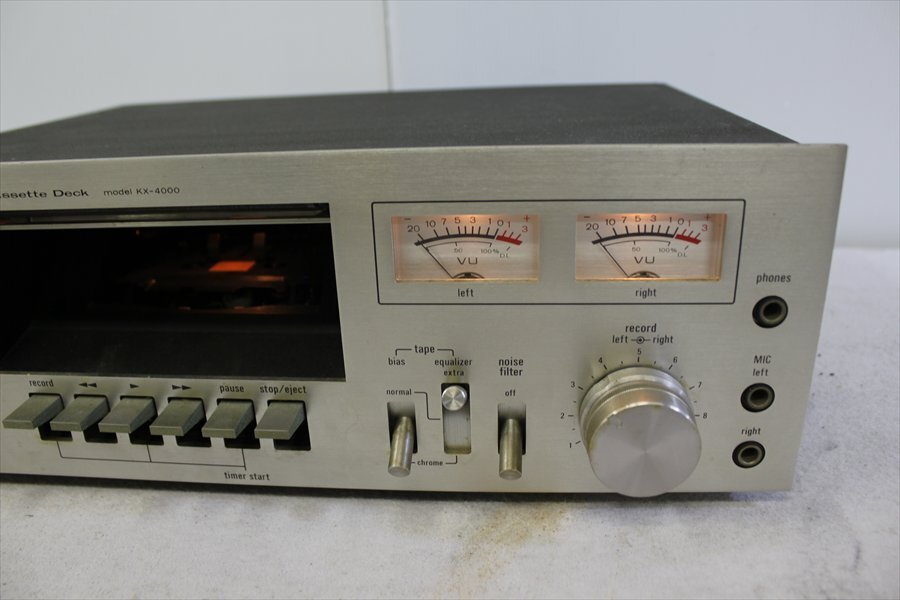 | ◆商品◆ メーカー---------TRIO トリオ 型式-------------KX-4000 付属品-----------画像に写っているものがすべてになります。 ◆外装ランク◆ 【 D 】 ◆状態◆ 中古品の為キズや汚れなどの使用感はご容赦ください。 1 通電します カセットの蓋が閉まらない、開いたまままになってしまう 外装にキズ汚れ有り 音出し確認済。 現状品での出品となります。 調整やメンテナンスが必要となります。 【重要】配送送料と送料に送料が0円と表示される場合がございますが、出品画面に記載の送料が落札後にご精算されます。 | |||||||||||||||||