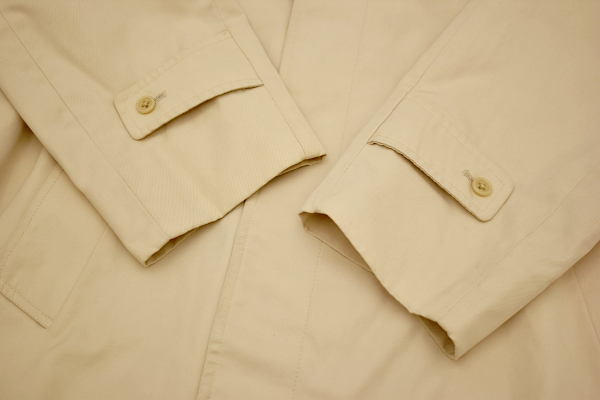 ベージュ ステンカラーコート 外ポケット2個 内ポケット3個 フライフロント 裏地チェック