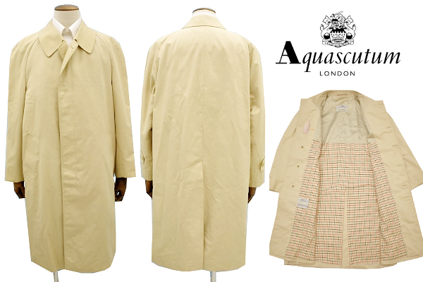 A-5037★送料無料★Aquascutum アクアスキュータム Aqua5★英国 イングランド製 ベージュ バルマカーン ステンカラーコート M相当