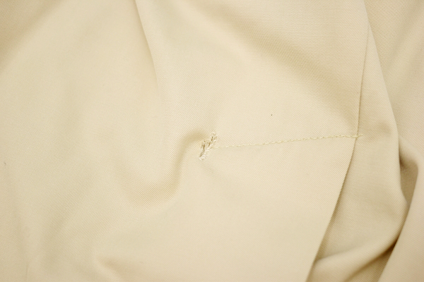 後ろ裾中央45cm上に小傷(1cm程さけしまっています)が見られ、後ろ右肩付近に薄っすらと汚れが見られますが、まだまだご活躍いただけるかと思います。