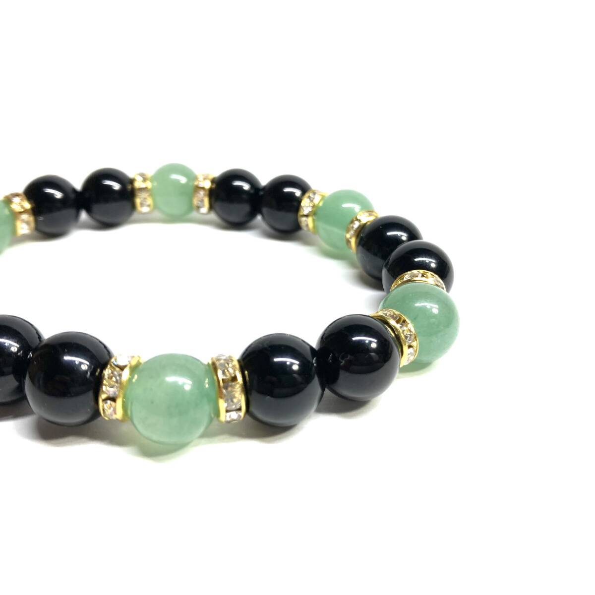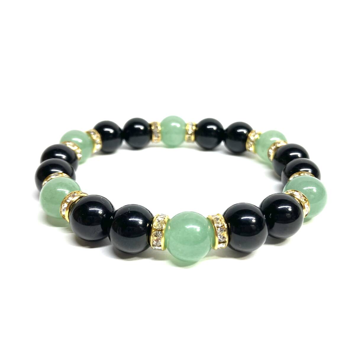 こちらは、モリオンとアベンチュリンを組み合わせたパワーストーンブレスレットです。間にはロンデルを挟み高級感あるデザインに仕上げております。石大きさは腕にも馴染みやすいように10mm玉で内径約18cm(伸可能)です。(サイズ変更の場合は取引ナビにてご連絡をお願いします。) 数に限りがございますので気になる方はお早めにどうぞ。
