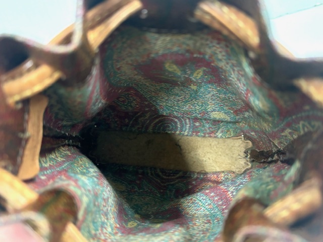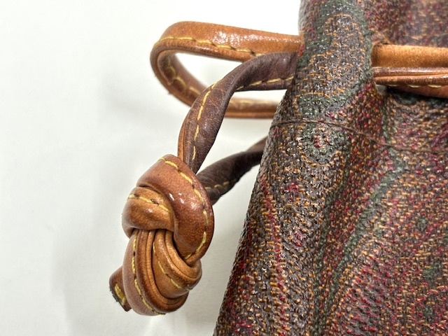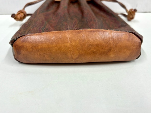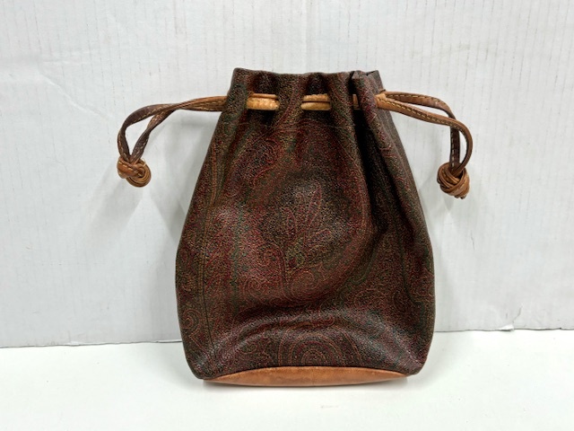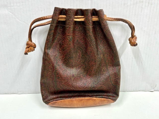 IY90483K ETRO エトロ 巾着 ポーチ ペイズリー柄 小物入れ イタリア製 レザー 高さ約20㎝ 横約16㎝ 現状品