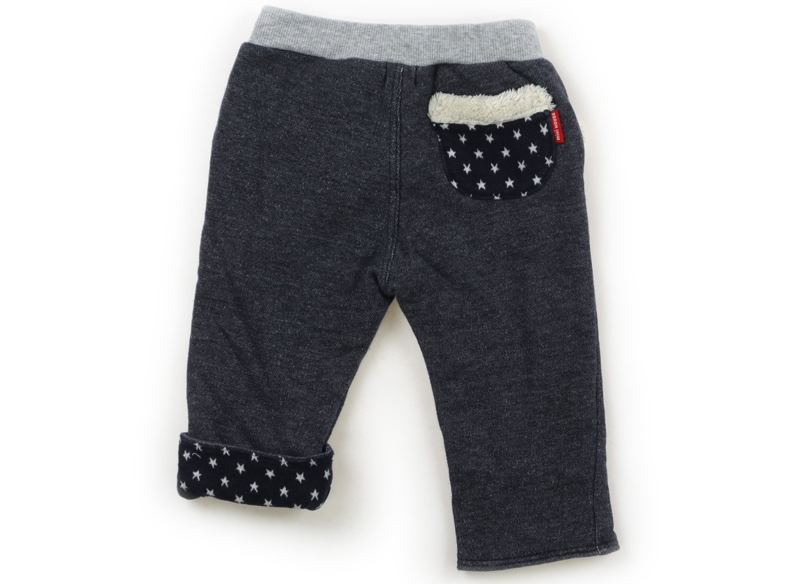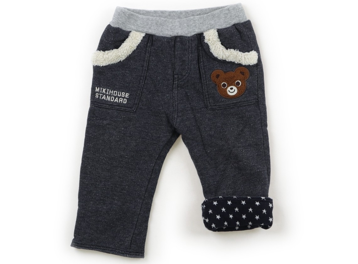 コットン素材。フリース粗材の裏地付き。ウエストは総ゴムです。裏地に白い毛羽立ちが見られます。洗いざらし感があります。