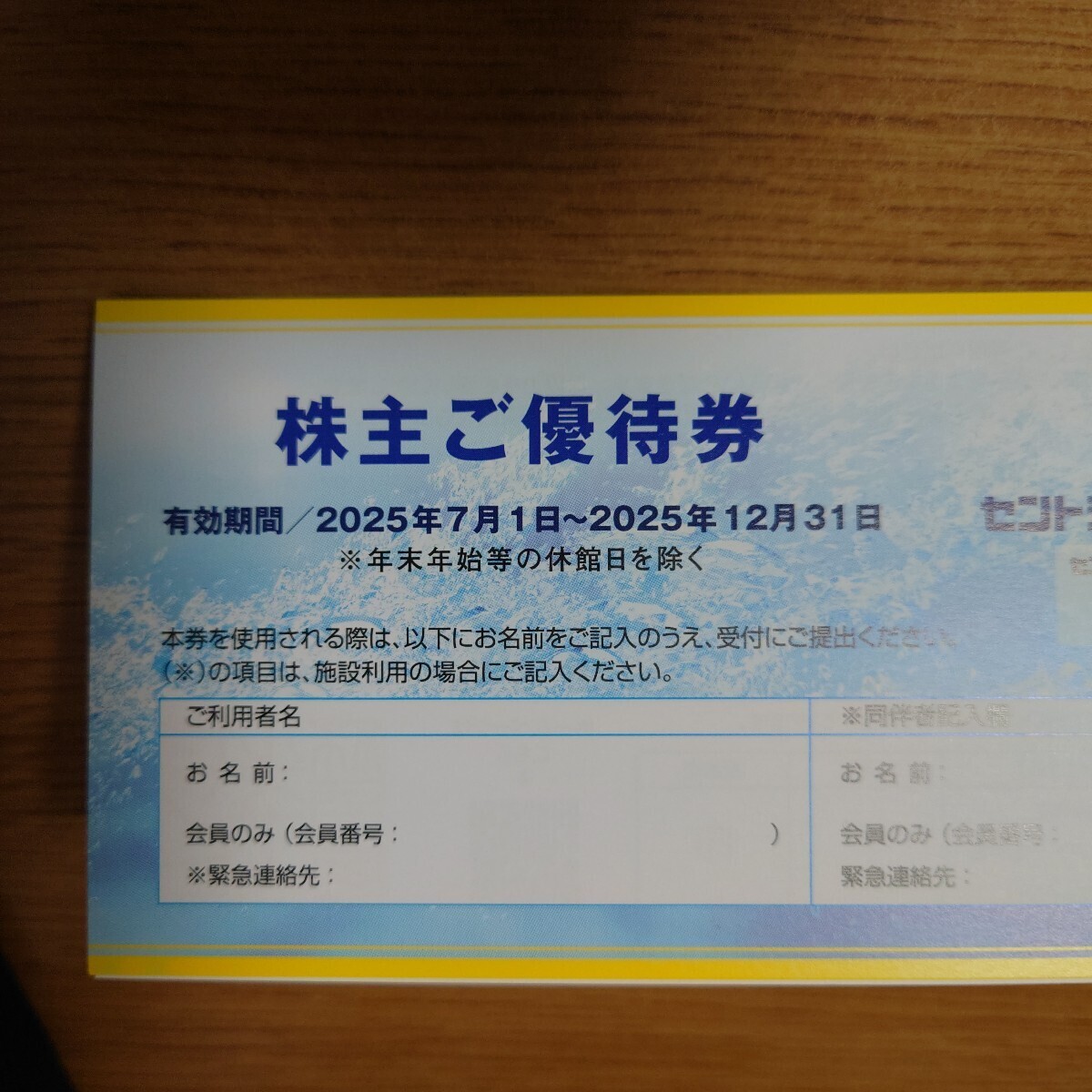 セントラルスポーツの株主優待券 6枚(6枚綴1冊)です。