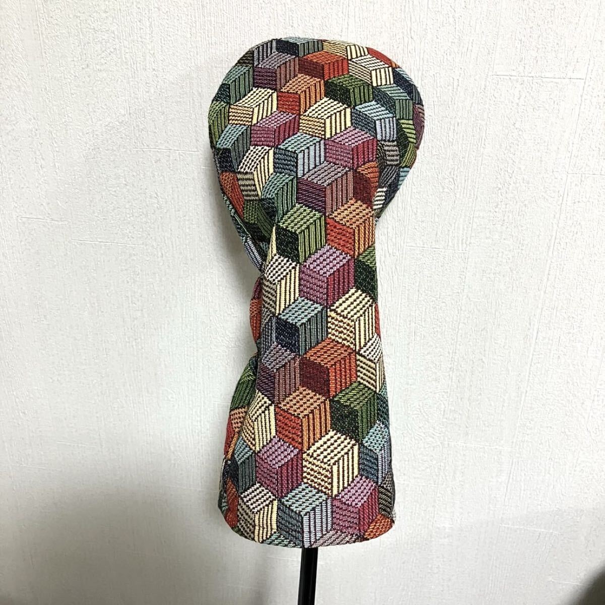 幾何学模様柄の生地でゴルフのヘッドカバーを作成しました。