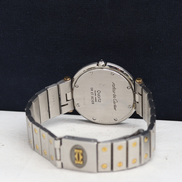 1円 稼働 良品 カルティエ QZ サントスラウンド 83038288 YG×SS 白文字盤 メンズ腕時計 0139700 12TLT IKE