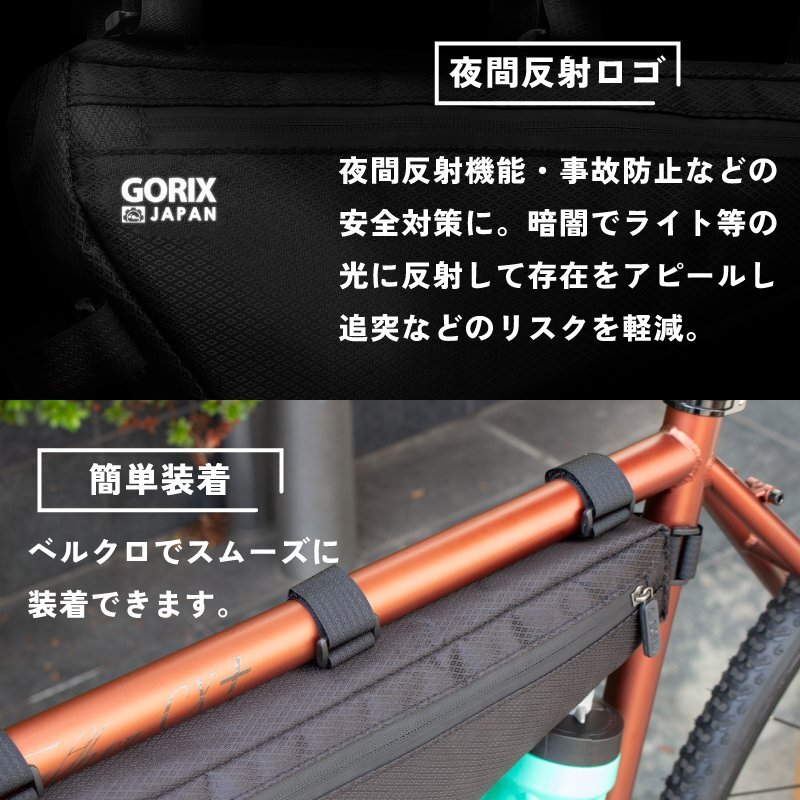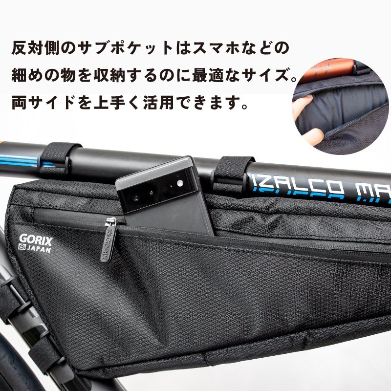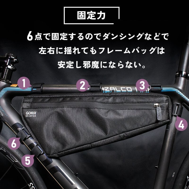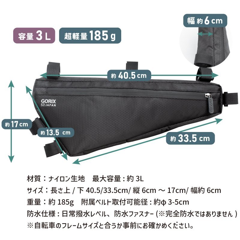 ロードバイクやクロスバイク、マウンテンバイクなどのフレームに取付けできる自転車用フレームバッグ。 ツーリングや長距離のロングライド、自転車旅、普段の街乗り、自転車通勤など様々なシーンで大活躍する便利なバッグです。 容量は3Lと見た目より荷物がよく入る収納力。 左右にポケットがあり、片方はサブポケットとなってスマホなどの細めの物の収納に最適です。 フレームの空きスペースを有効活用しバッグを装着する事で収納箇所を拡大。 シンプルでカジュアルなアウトドアデザインなのでどんなフレームにもぴったり。 撥水加工の生地と防水ジッパーを採用。 ジップは広く開ける事ができきるので取出しも楽々。 またペダリングの邪魔にならない幅サイズで気にならない。 使用頻度の高い自転車通勤や通学、自転車配達などにもおすすめなサイクルバッグ。 [デザイン] シンプルでブラックはどんな自転車にもマッチ。 カジュアルで大人っぽくおしゃれに。 [サイズ] MAX40.5cm。深い部分は深さがあるので収納できる物の幅が広がりました。 サブバッグとしても便利。 ペダリングの邪魔にならない幅サイズ。 [日常撥水レベル] 全体に撥水加工を施し短時間の弱い雨などに耐えれます。 防水ファスナー採用し隙間から入る水の侵入を阻止します。 ※撥水加工で完全防水ではございません。 [収納力] 大容量3L。チューブや鍵、工具や軍手、折畳傘、薄手のウィンドブレーカーなど入る。 またサブポケットはスマホなどの細めの物を収納するのに最適なサイズ。 両サイドを上手く活用できます。 [組合わせて] サドルバッグやフロントバッグ、トップチューブバッグなどを組み合わせれば収納力がさらにアップ! [6点固定] 自転車フレームに6点で固定するのでダンシングなどで左右に揺れてもフレームバッグは安定し邪魔にならない。 [夜間反射ロゴ] 夜間反射機能・事故防止などの安全対策に。暗闇でライト等の光に反射して存在をアピールし追突などのリスクを軽減。 無いよりも視認性が向上します。 商品内容自転車用フレームバッグ サイズ長さ上/下40.5/33.5cm/縦6cm~17cm/幅約6cm 材質ナイロン生地 重量約185g 附属ベルト取付可能径約φ3-5cm 最大容量約3L 防水仕様日常撥水レベル、防水ファスナー(※完全防水ではありません) 商品は入荷によりキズがある場合があります。 傷や細かい汚れが気になる方や神経質な方は入札をお控え下さい。 入荷時期により予告無く一部仕様変更する場合が有ります。 カラーはディスプレイ種類環境等により実物と異なって見える場合がございます。 |