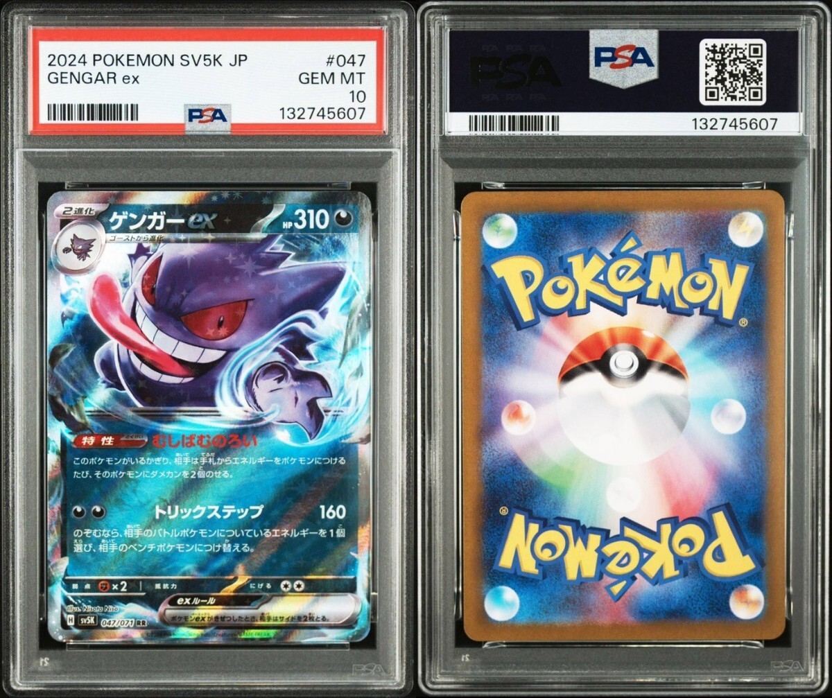 ゲンガーex [RR] (SV5K_047/071) スカーレット&バイオレット 拡張パック ワイルドフォース ブランド:ポケモンカードゲーム 発売日:2024/01/26 パッケージ:シングルカード 言語:日本語 ポケモンカードレアリティ:RR psa10 自身で鑑定に出したワンオーナー品となります。 小さな傷(凹み、ホロ欠け、白欠け、線傷)等ある場合がございます。 トラブル防止の為、画像にて状態確認をお願い致します。