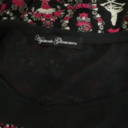 ヒステリックグラマー HYSTERIC GLAMOUR 半袖チュニック カットソー 総柄 シアー切替 F ブラック /MY ■OS レディース