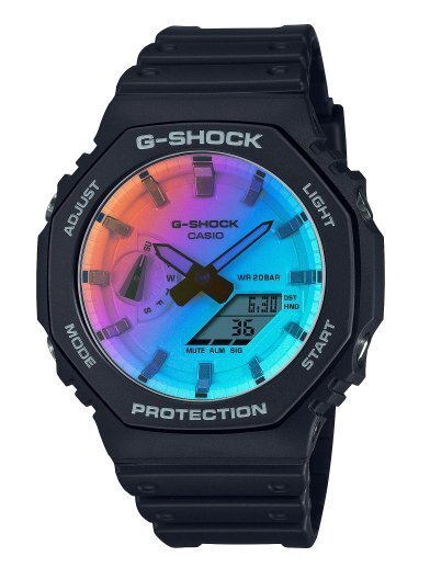 1983年の発売以来、飽くなき強さを求めて進化を続けるタフネスウオッチG-SHOCKから、G-SHOCKで初めてガラス板全面に蒸着を施したIridescent Colorシリーズです。