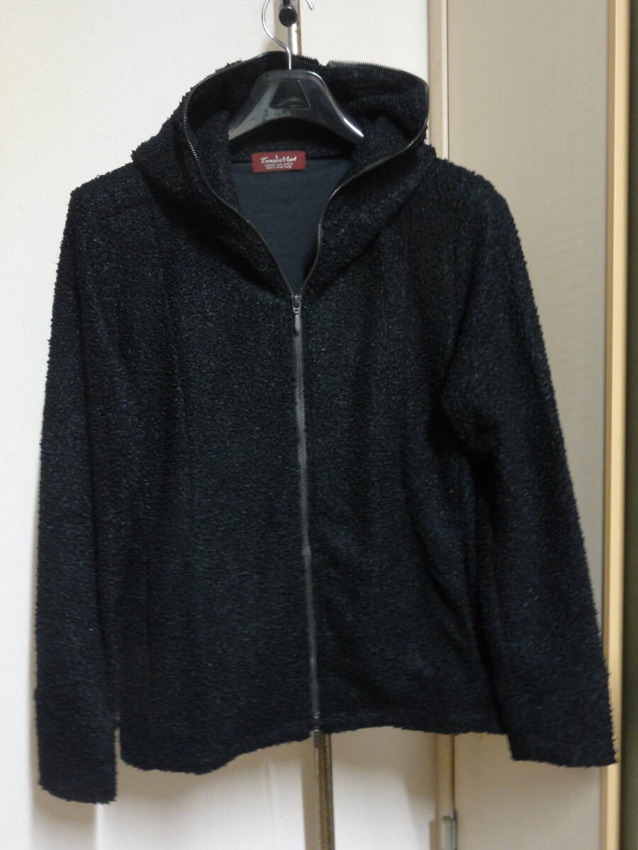 格安日本製(イタリア製生地使用)廃版レアかっこいい・TORNADO MART(トルネードマート)・珍しい黒系パイル(又はカットパイル?)風地?・高級フード込みフルジップ型パーカー M位になります。