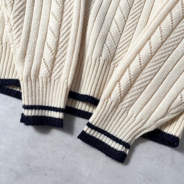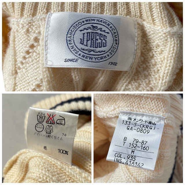 洗える♪ J.PRESS Jプレス ウール100% ミドルゲージ 透かし編み リブ編み 配色 タートルネック ニット セーター オンワード レディース(M) 毛 クリーム /e-166