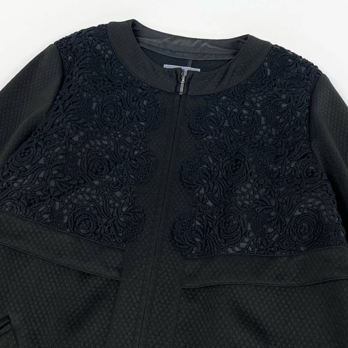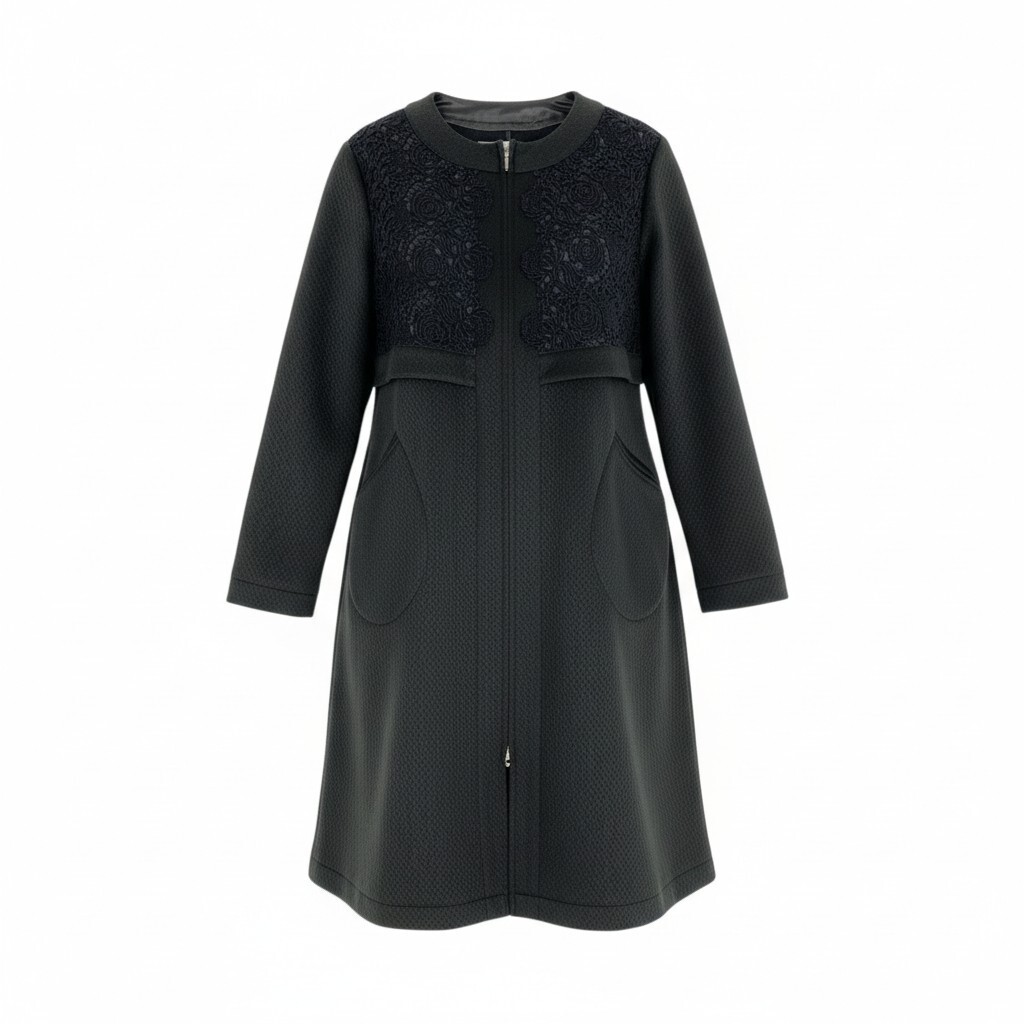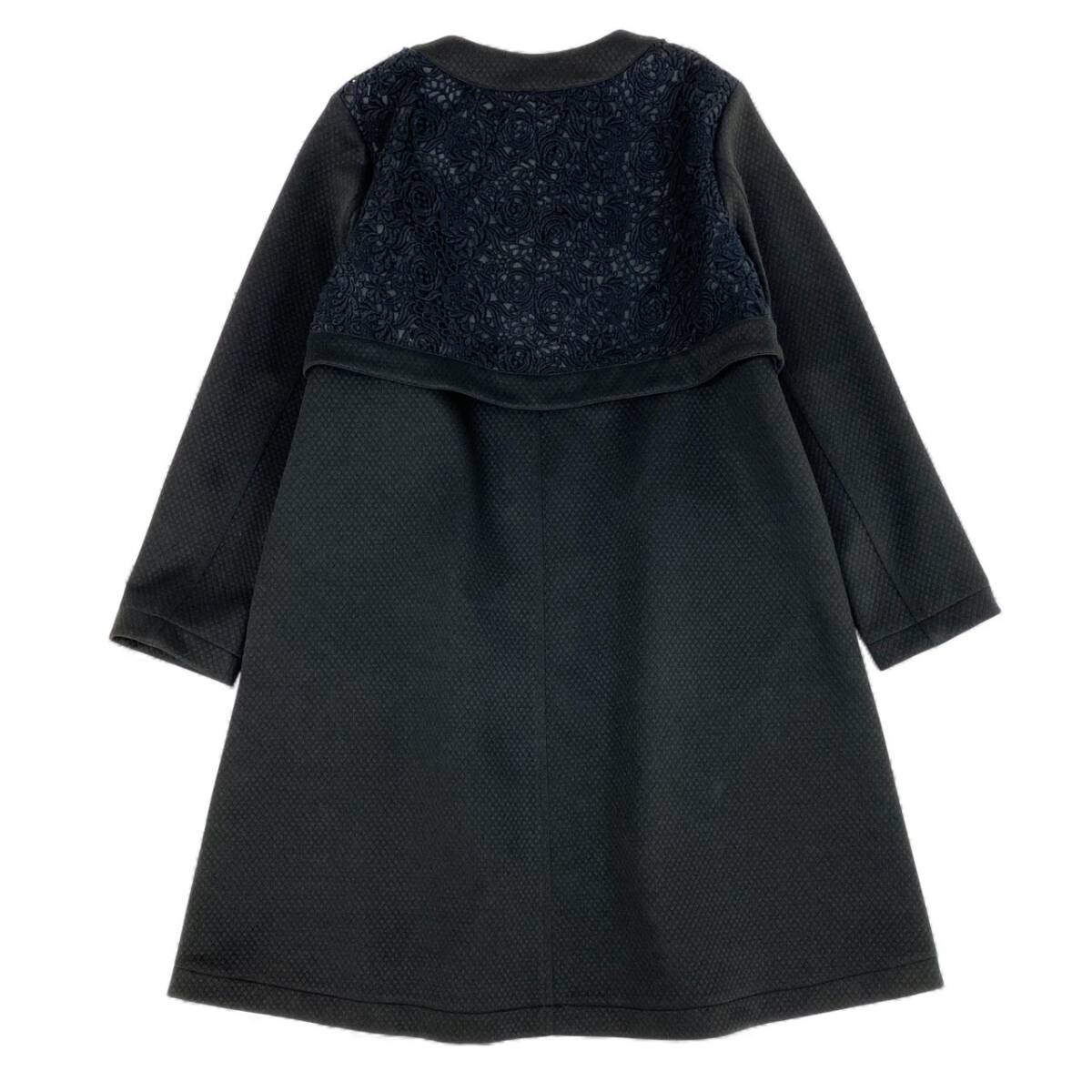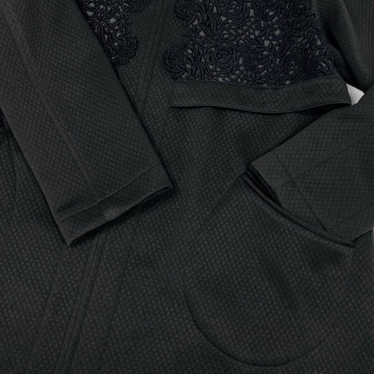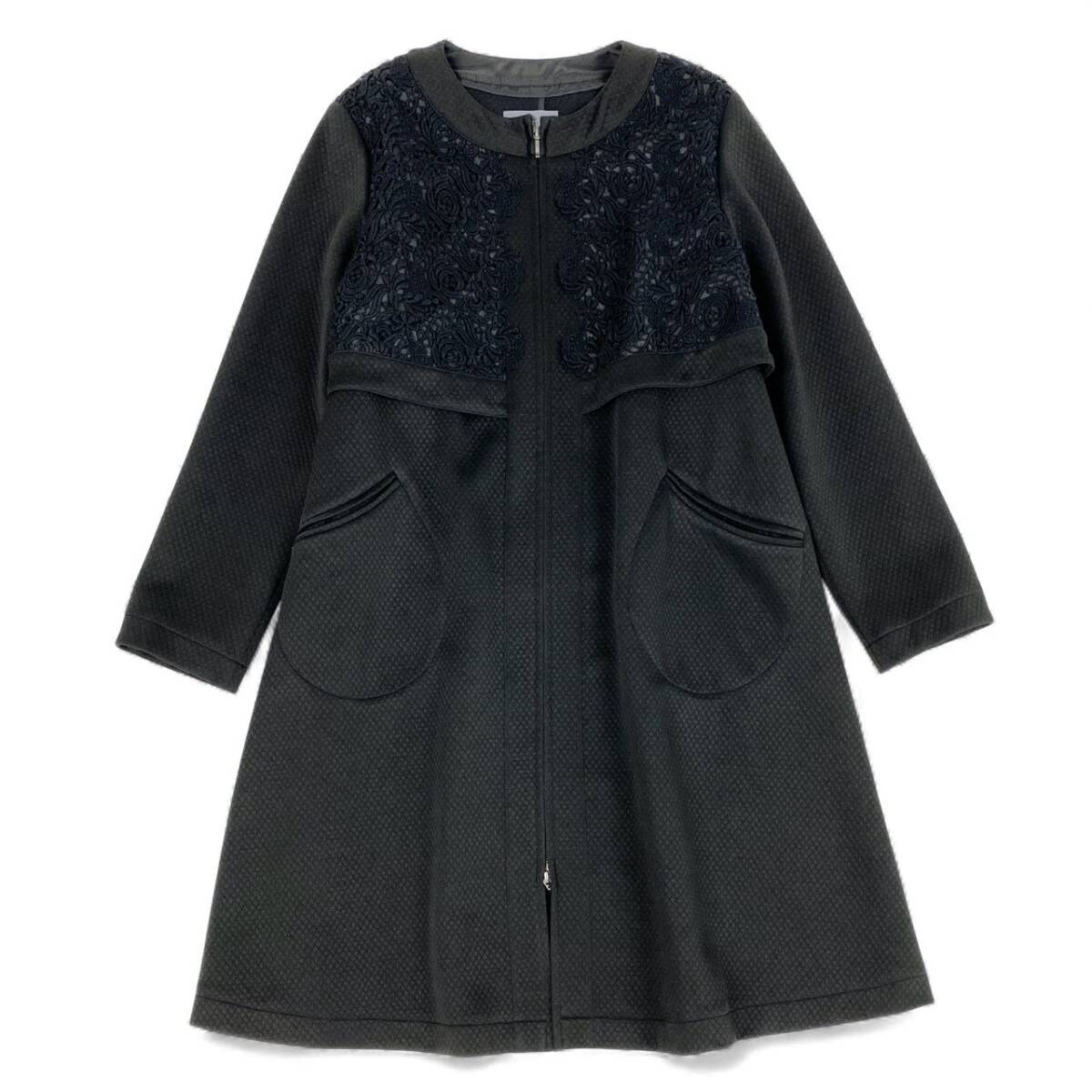 | スタッフ商品コメント | トクコプルミエヴォルらしい繊細な世界観が際立つ、ブラックカラーのノーカラーコートです。フロント上部には立体感のあるレース刺繍が施され、シンプルな中に華やかさを添えています。素材はマットで程よくハリのある質感で、落ち着いた大人の印象を演出します。ノーカラーデザインのため、ストールやアクセサリーとも好相性。ワンピースやパンツスタイルに羽織るだけで、上品にまとまる一着です。 |