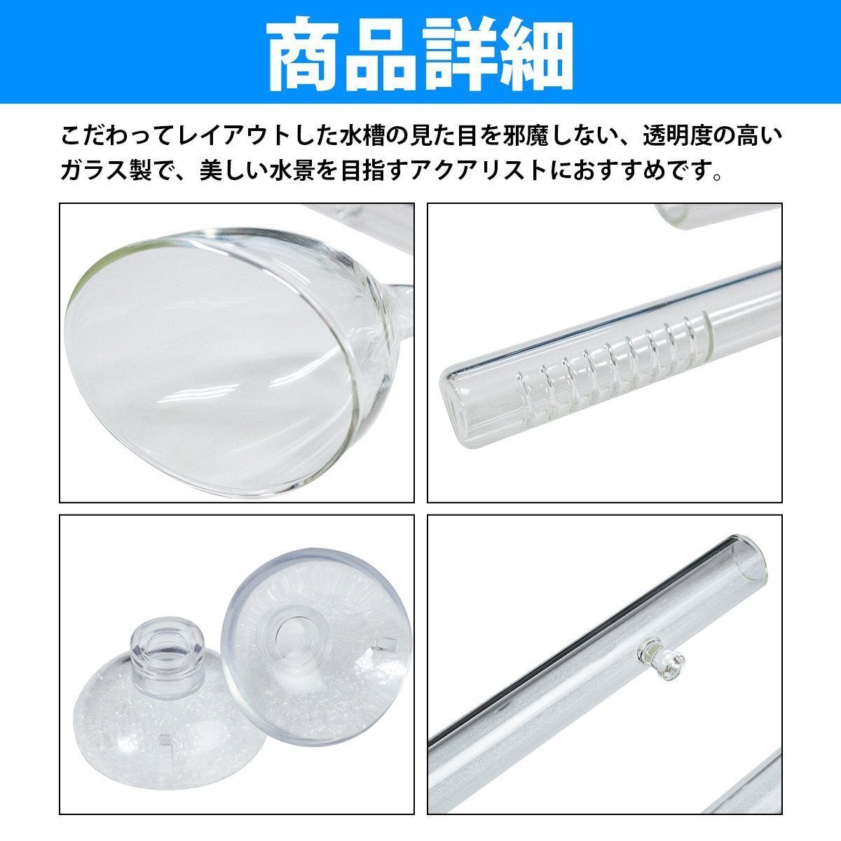 リリィ型 16/22 ホース 対応 水槽 ガラスパイプ セット 吸水 出水 パイプ 水槽 水草 熱帯魚 給排水 クリア ガラス 排水
