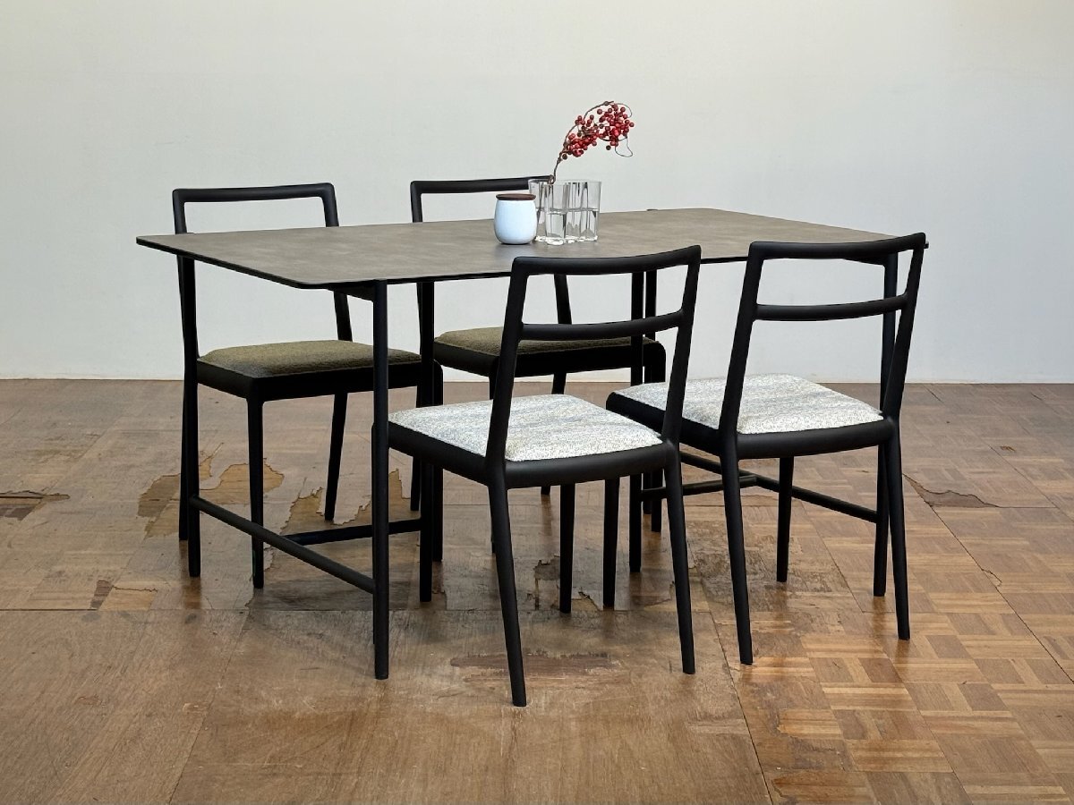 ストンと落ちるほっそりとした6本レッグスで足回りをスッキリと装飾し、セラミックトップとしては驚異の13mm天板厚というスリムなデザインを実現し、合わせるチェアのデザインを前面に引き立てる構成。