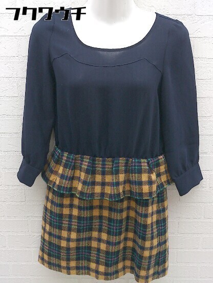 ◇ aquagirl ON THE STREET 切替 バックジップ 長袖 ミニ ワンピース サイズ36 ネイビー キャメル レディース