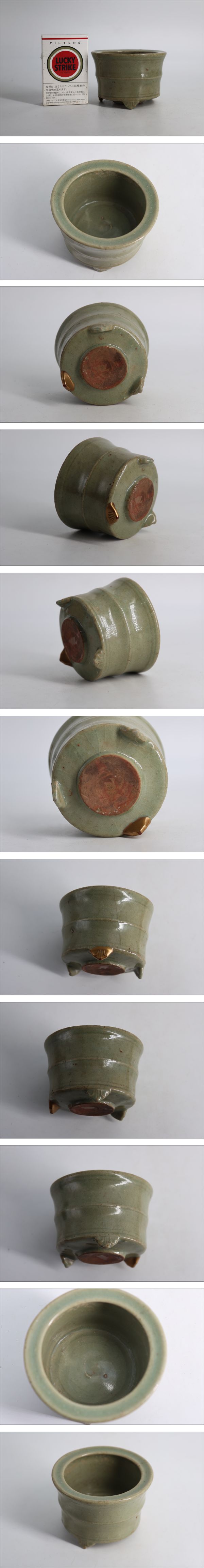 唐物 明時代 龍泉窯 青磁 三足 香炉 時代物