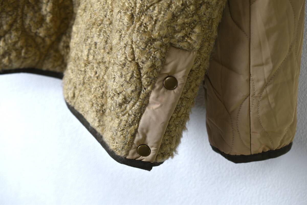 素材 表記:表(身頃)アクリル82% 毛15% ポリエステル3% 袖&中綿&裏、ポリエステル100%