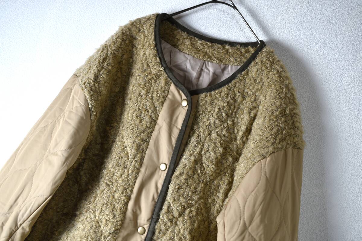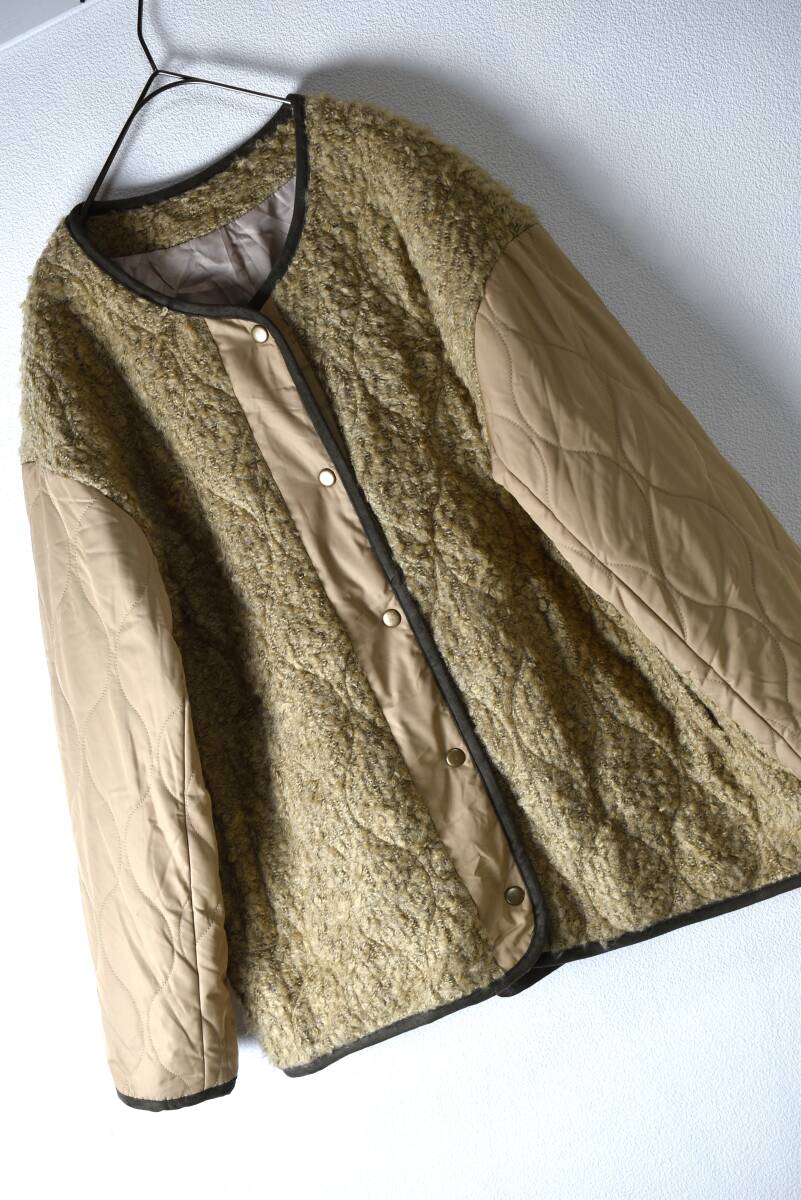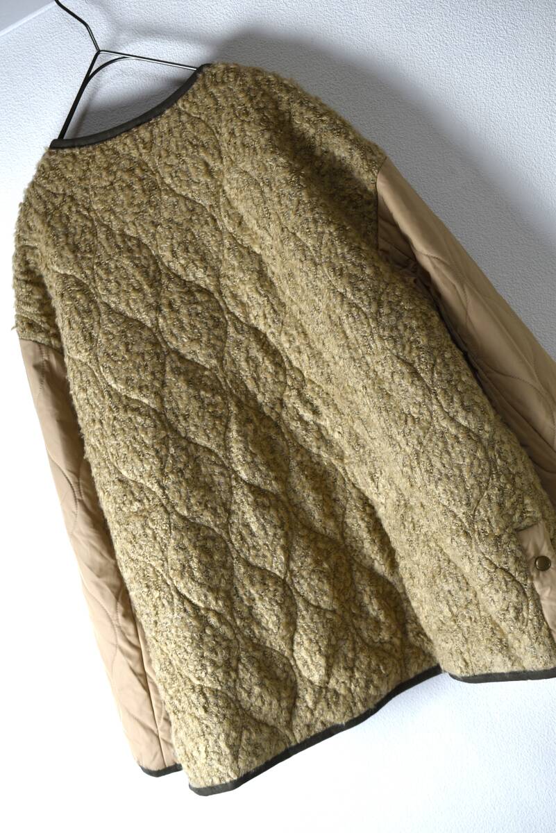 商 品 名:DAMA ダーマコレクション 異素材コンビ☆ウール混キルティングノーカラージャケット  です。