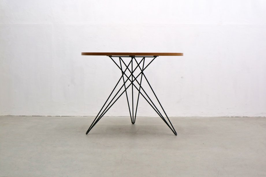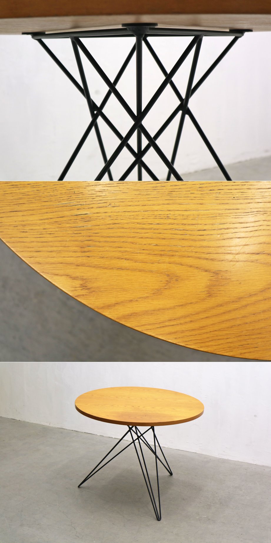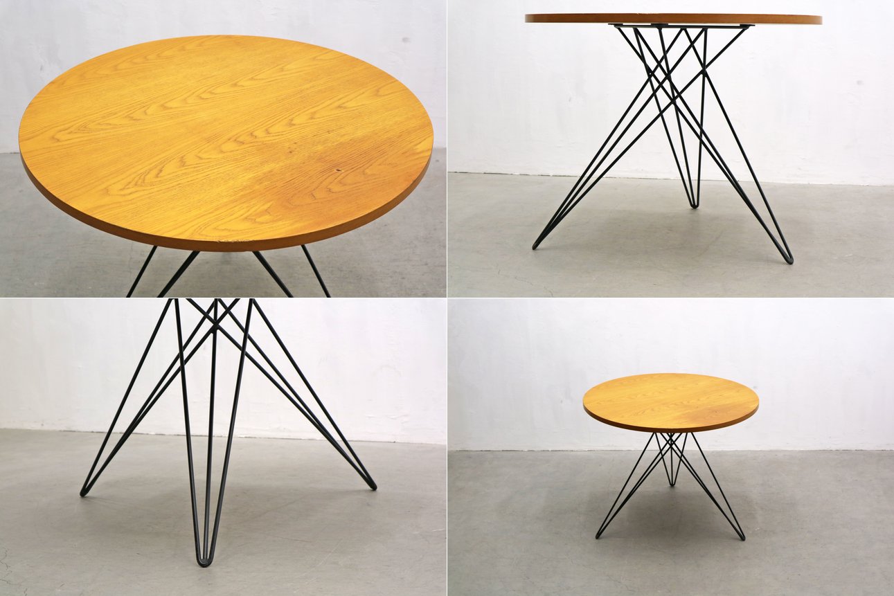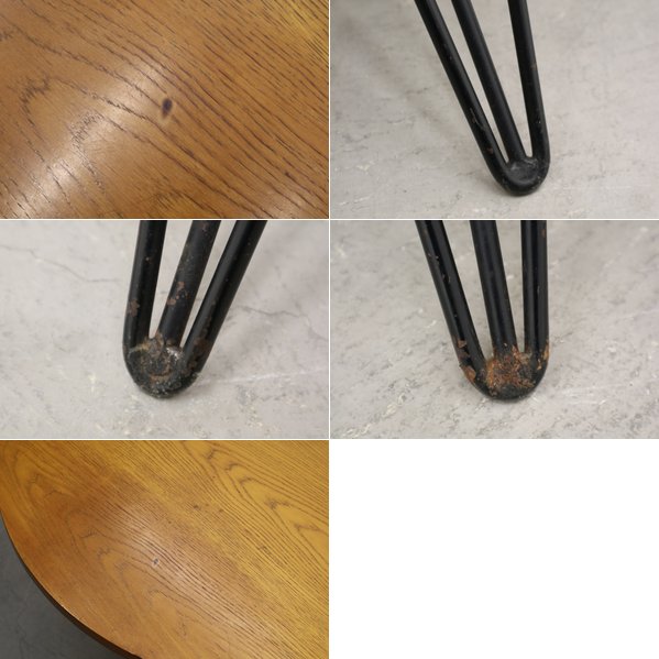 ラウンド ダイニングテーブル オーク突板 アイアン ヘアピンレッグ インダストリアル