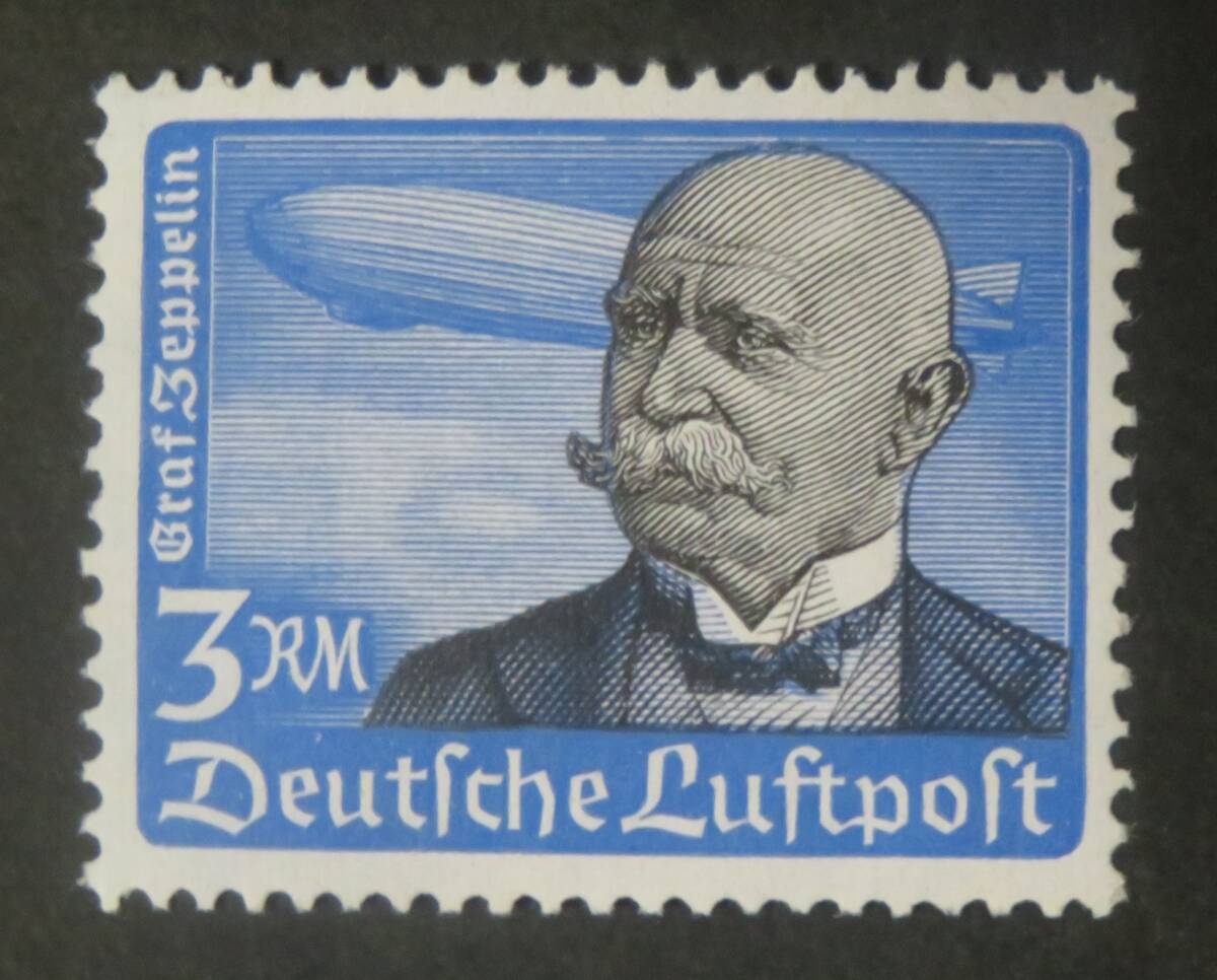【ドイツ切手・航空切手:未使用】ツェッペリン伯爵と飛行船 3m [発行年月日・1934年1月21日](評価○美品)