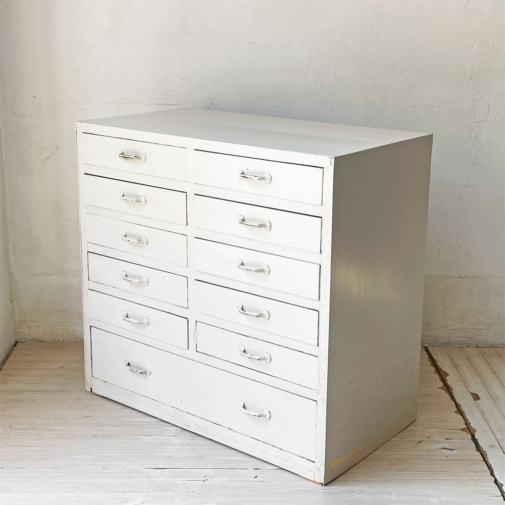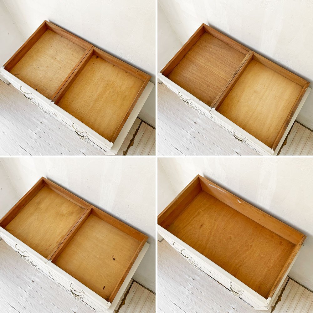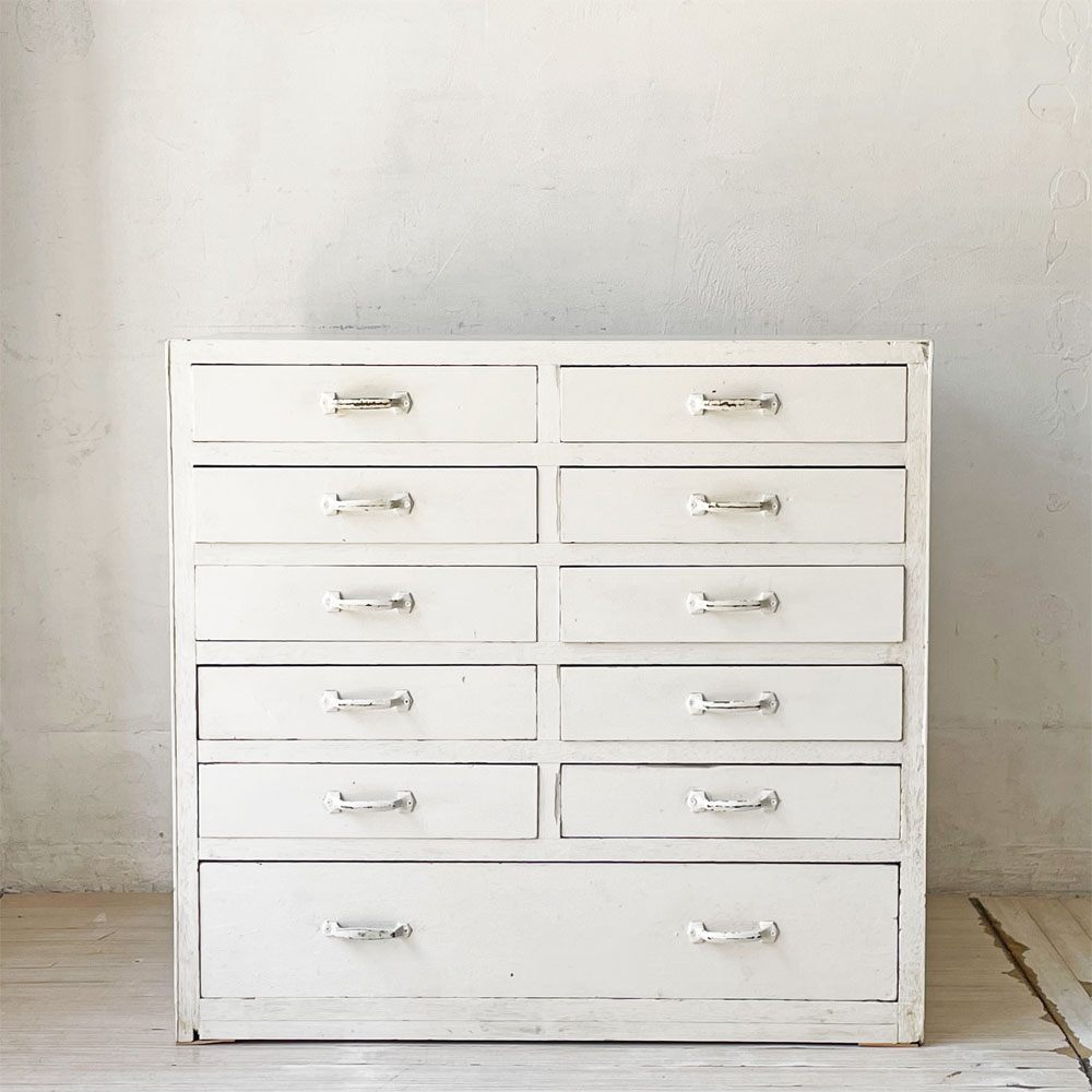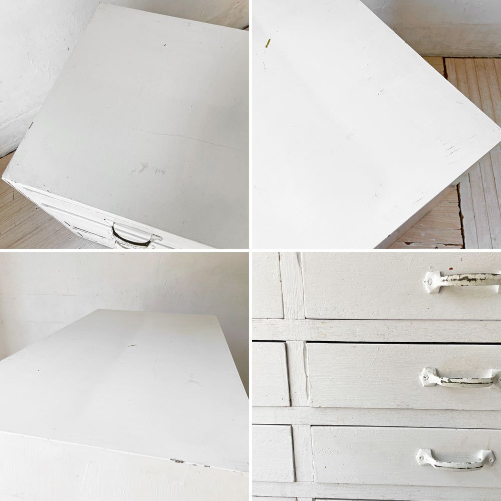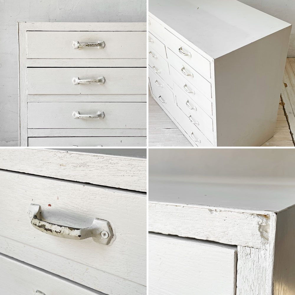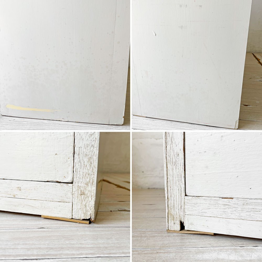 | コメント | 無駄の無いデザインが年月を経たことで生まれる風合いを引き立てるジャパンビンテージのチェストです。 木材の風合いを活かし、ホワイトペイントが施されたこちらは、シャビーシックな雰囲気が魅力的な一品となります。 お洋服や生活感の出やすい小物を目隠ししながら分類収納が可能。 抽斗最下段は、左右に分割されておらずサイズの異なるものを収納していただけます。 清潔感のあるホワイトペイントで仕立てられていますので、素朴ながらもぱっと明るい空間を演出。 ホームユースから店舗用インテリアとしてもお勧めできるアイテムです。 ※当ショップは、主にリサイクル品を取り扱っております。基本的にUSED品である事をご理解頂き、ご入札をご検討下さいませ。 |