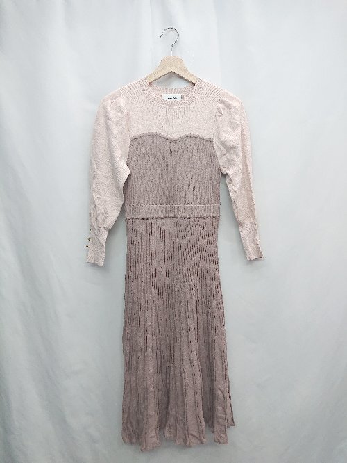 ◇ ⊇ le reve vaniller ル レーヴ ヴァニレ 長袖 膝下丈 ワンピース サイズM ピンクブラウン系 レディース E