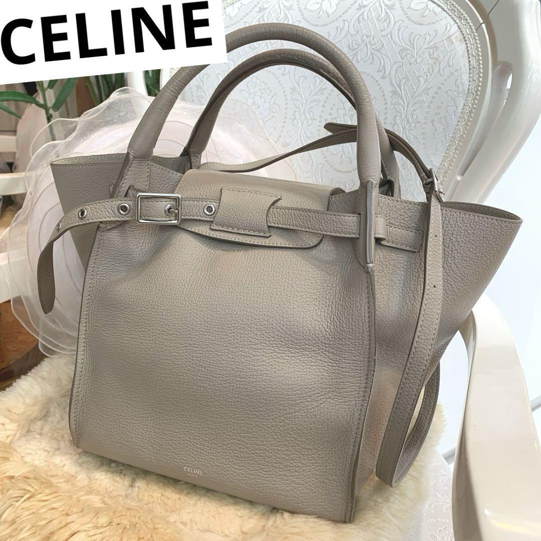 セリーヌ ビッグバッグ ミディアム エレガント ミニ ロングストラップ ストラップ付 ハンドバッグ トートバッグ ショルダーバッグ 肩掛け 斜め掛け 大容量 レザー 本革 牛革 グレージュ マチ幅 エレガント 上品 旅行鞄 トラベルバッグ