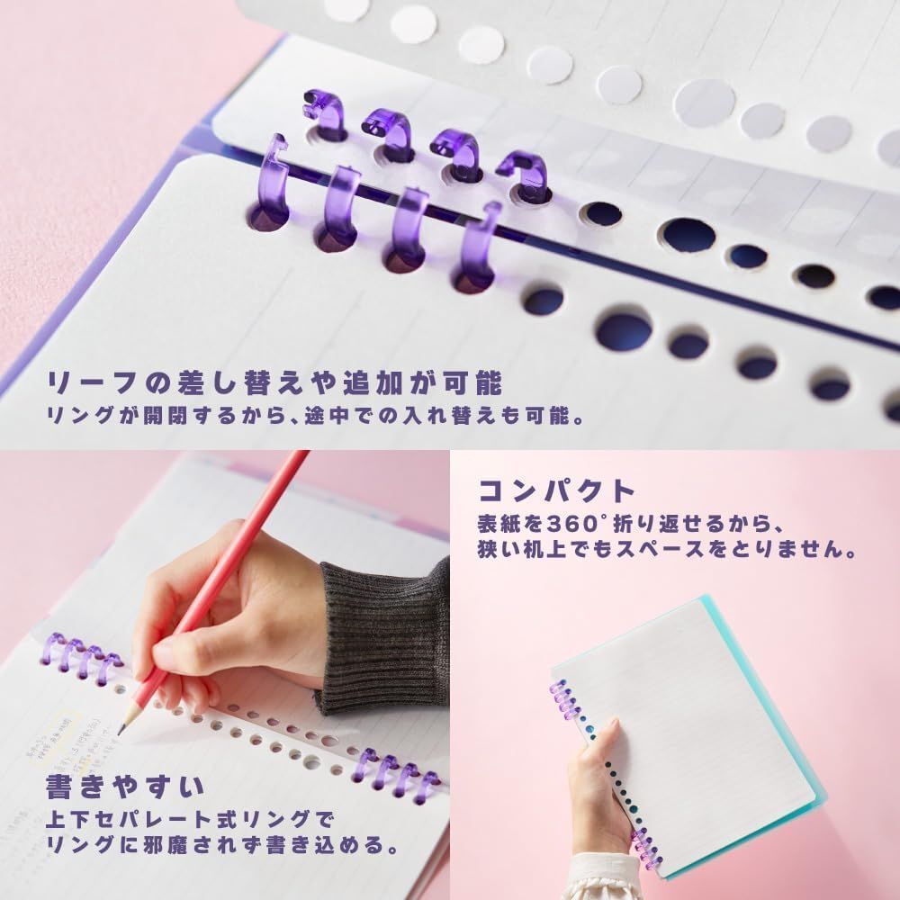 リングを開いて最大30枚のルーズリーフを収納でき、必要に応じて入れ替えることができます。