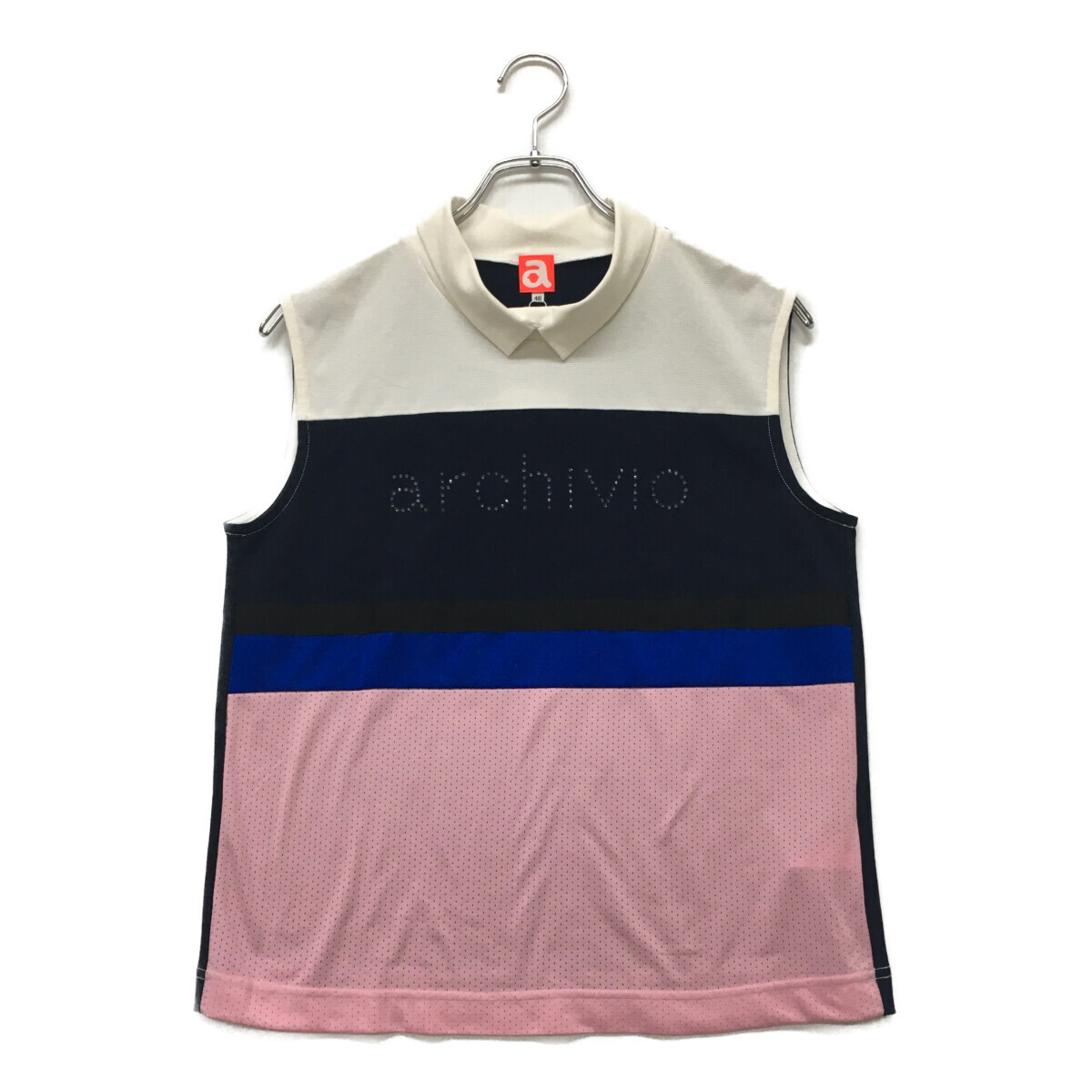 coco 未使用品【値下げ】 アルチビオ archivio レディース 半袖シャツ 40(L) ピンク 紺 ノースリーブ ネコパケ発送可 97054
