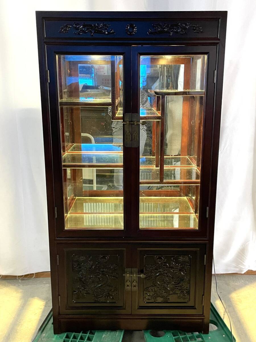 | 【K864】高級 飾り棚 キャビネット 家具 インテリア 古美術 ショーケース ライト付き 唐木 中国 細工 アンティーク | ||