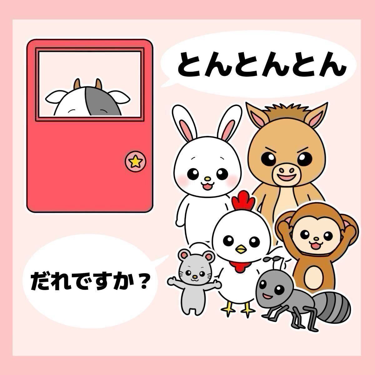 動物たちがドアからチラッと見えて登場する「とんとんとん、だれですか?」と、動物たちが持ってきたユニークな食材でケーキをつくる「ケーキをつくろう」の2つのおはなしセットです。組み合わせて見応えたっぷりなおはなしにもできるので、行事や誕生日会も安心です!