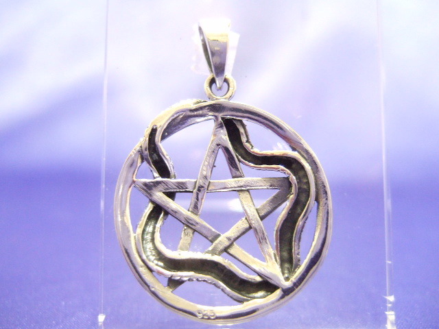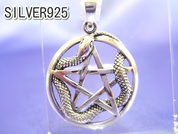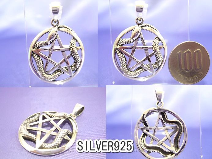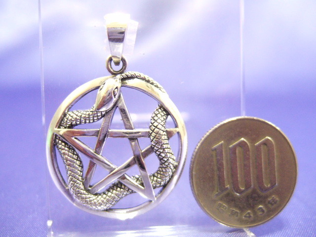 | 商品名 | 横浜最新 シルバーSILVER925銀ペンダント☆魅惑の五芒星スネーク 6.5グラム 巾27ミリ 守護魔除けペンタグラム |