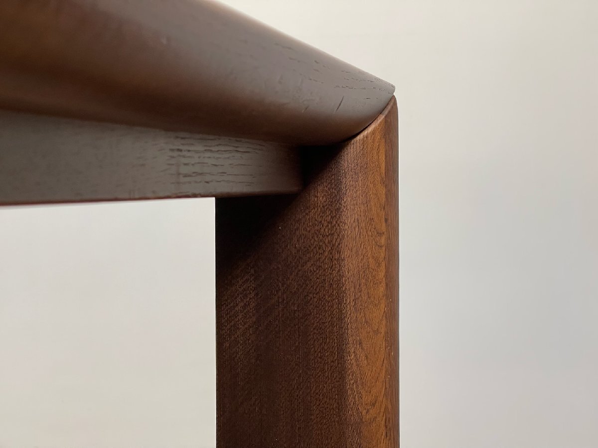 角度によって表情を変えるレクタンギュラーレッグスをデザインの支柱に据えつつ、短辺と長辺でエッジと丸みを使い分けることで、身体への当たりを配慮しつつデザイン美を追求したクリエイション。