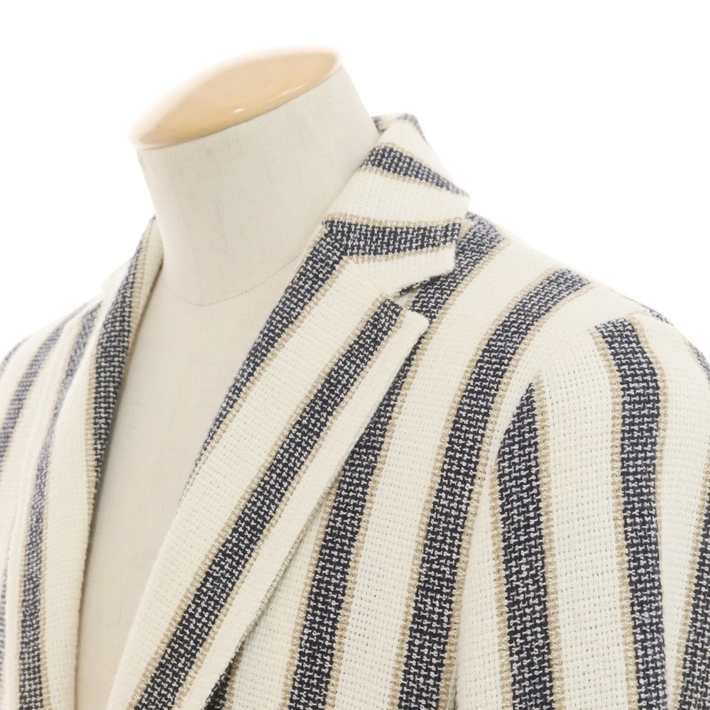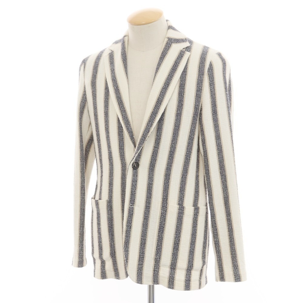 【中古】ティージャケット T-JACKET コットンアクリル ストライプ ジャケット アイボリーxネイビー【サイズS】