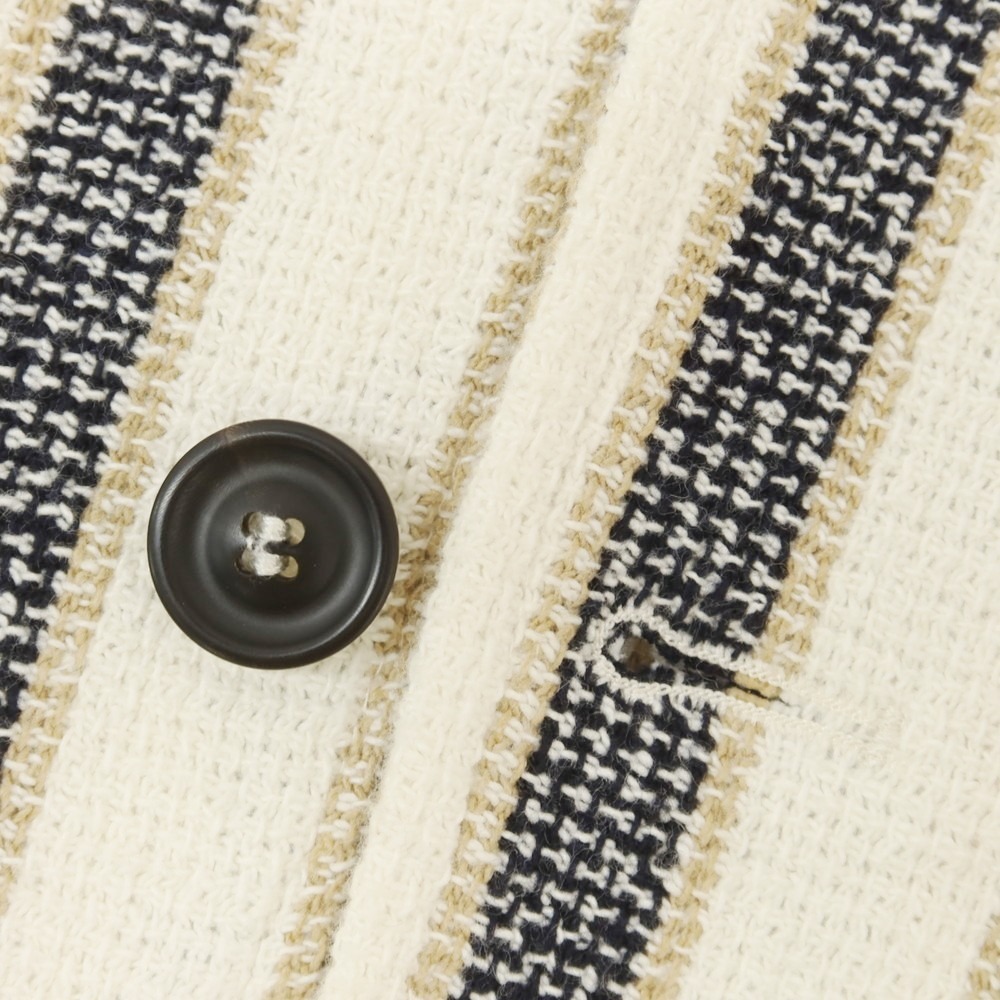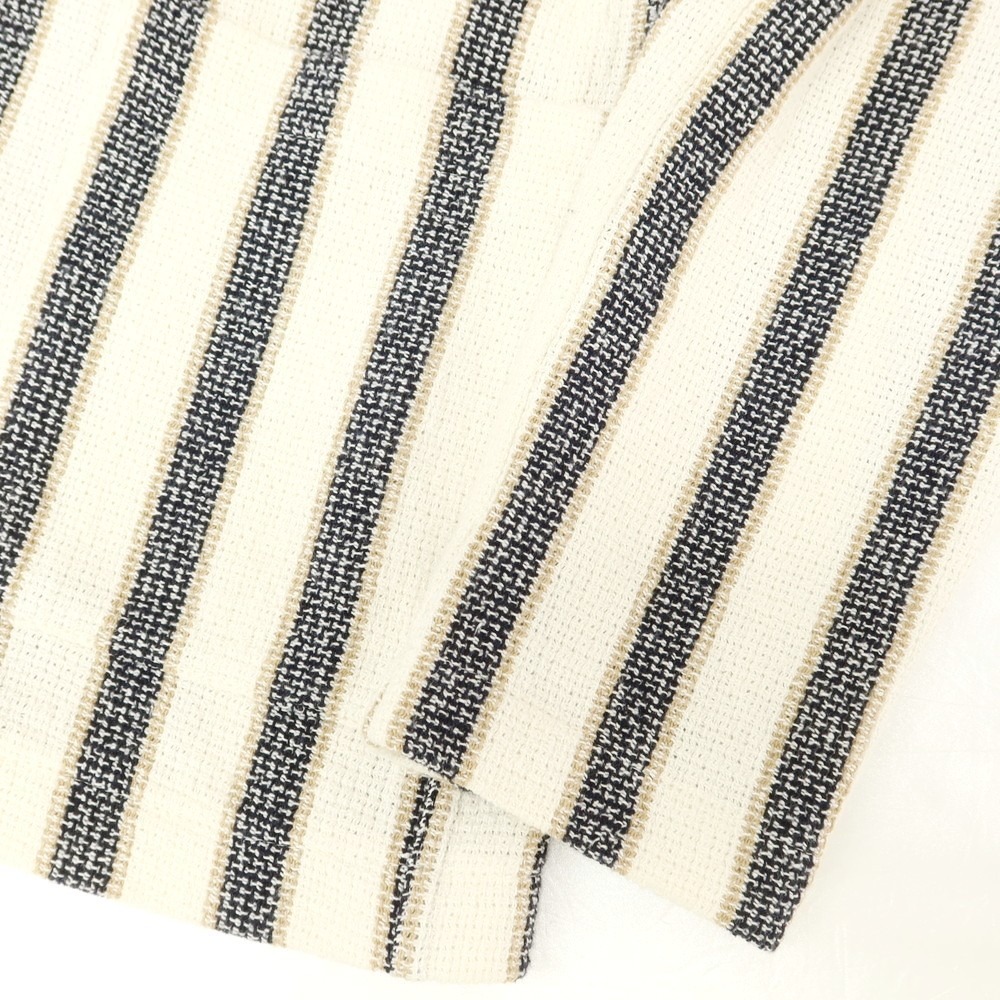 ざっくりとした織り感のコットンアクリル素材を用いたストライプジャケットです。緩やかに編んだニット調の素材になりまして、ほのかな伸縮性がリラックスした着心地に仕上がっています。春先の軽いジャケットになりまして、遊び心のあるジャケットスタイルから、休日のドレスアップまで幅広く使える一着です。