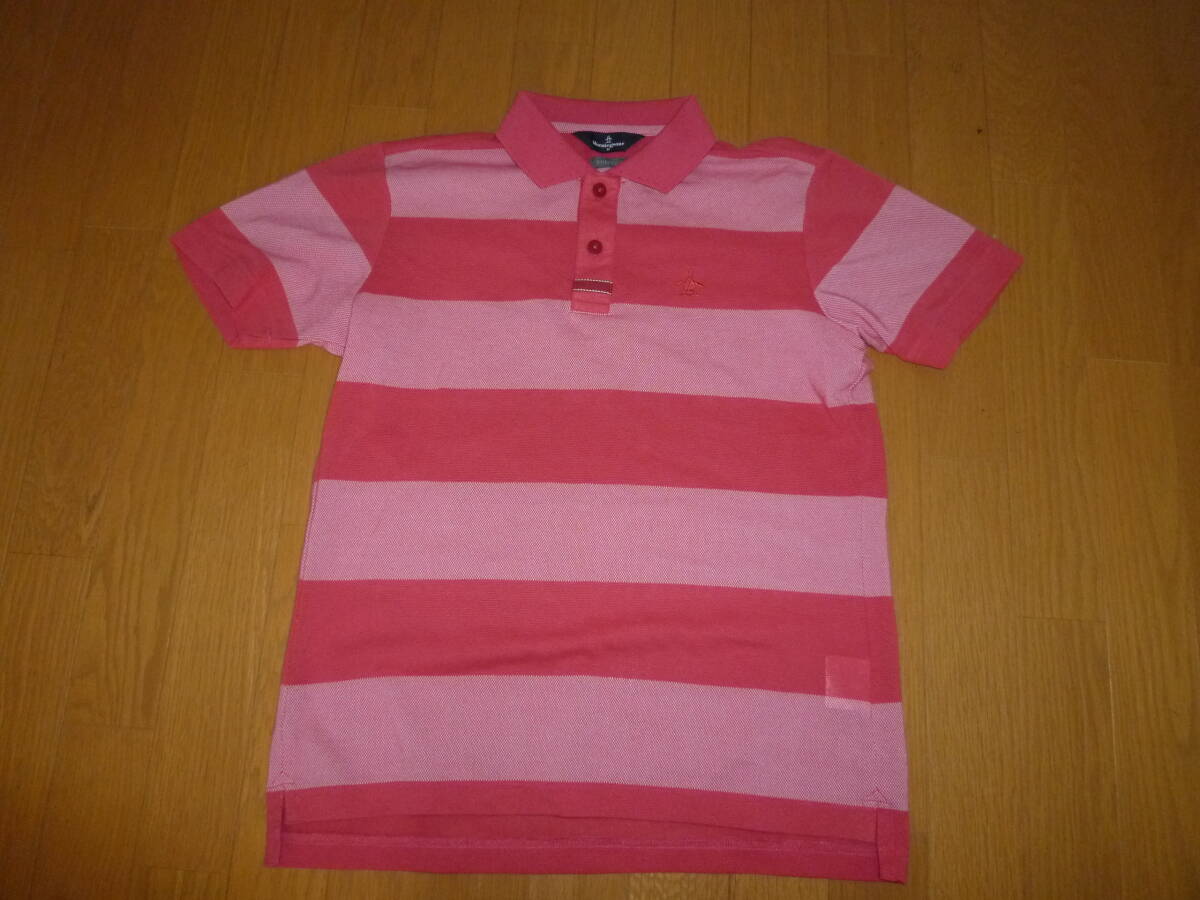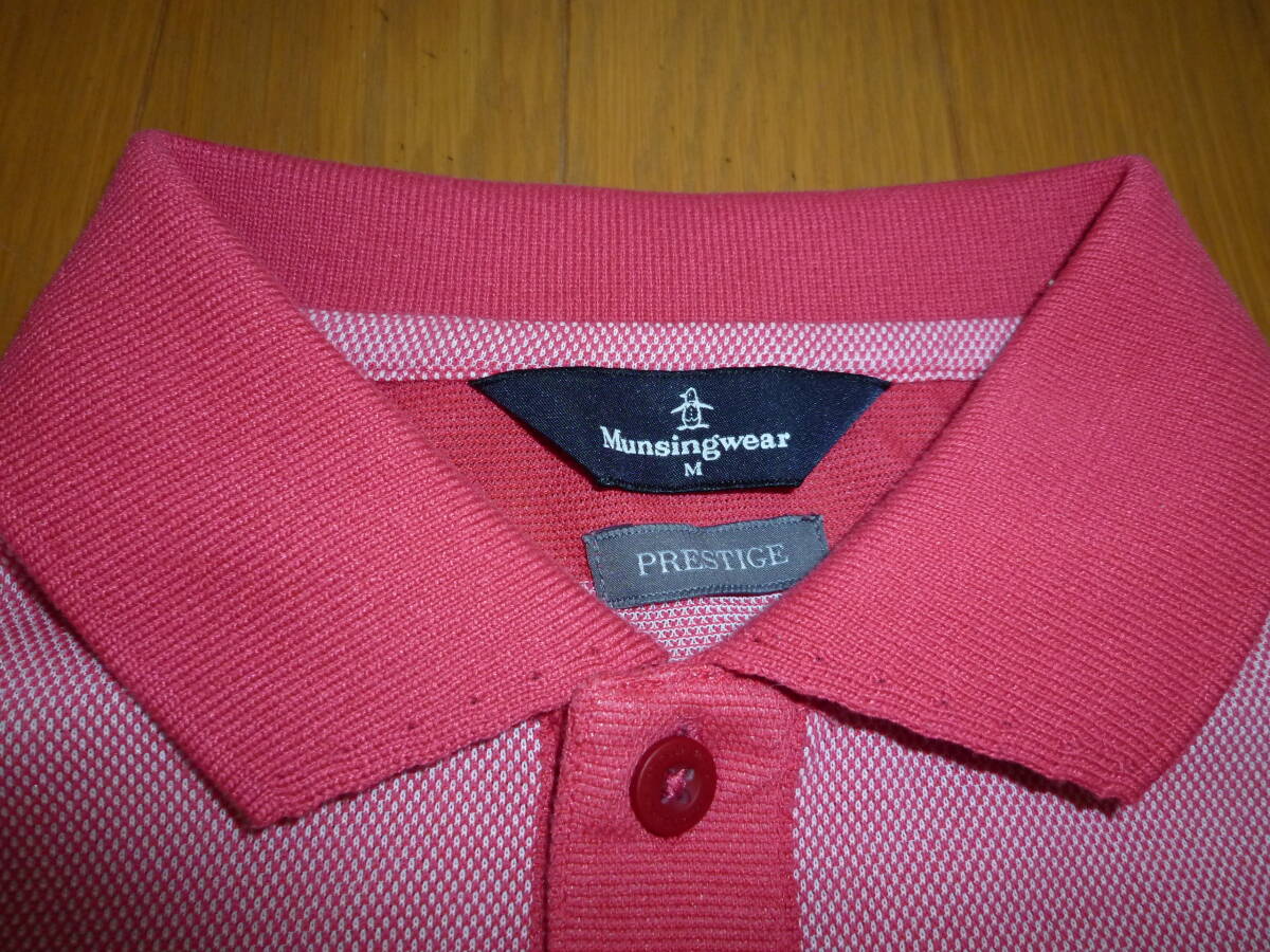 USED マンシングウェア PRESTIGE 半袖ポロシャツ ピンクボーダー M SG1769  デサント