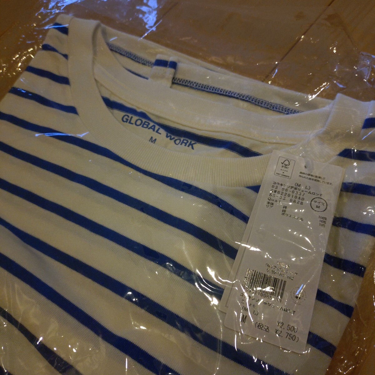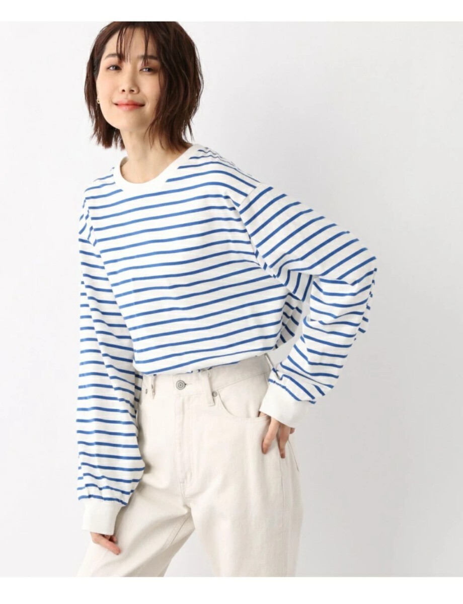 新品グローバルワークの抗菌袖ボリュームロンTです。ブルーボーダー。新品ですが自宅保管のため細かな点気になる方はご遠慮ください。